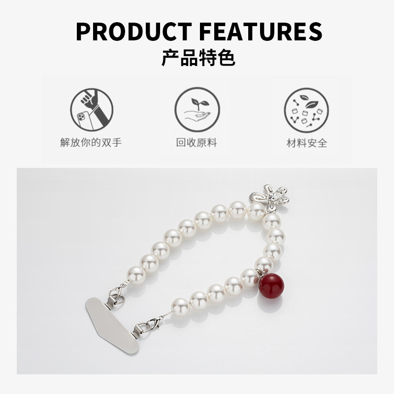 MASFEIL × 红豆珍珠手机挂链挂绳短款挂链绳子适用苹果17手机壳配件包包炫彩挂件挂饰超火高级感防丢网红女