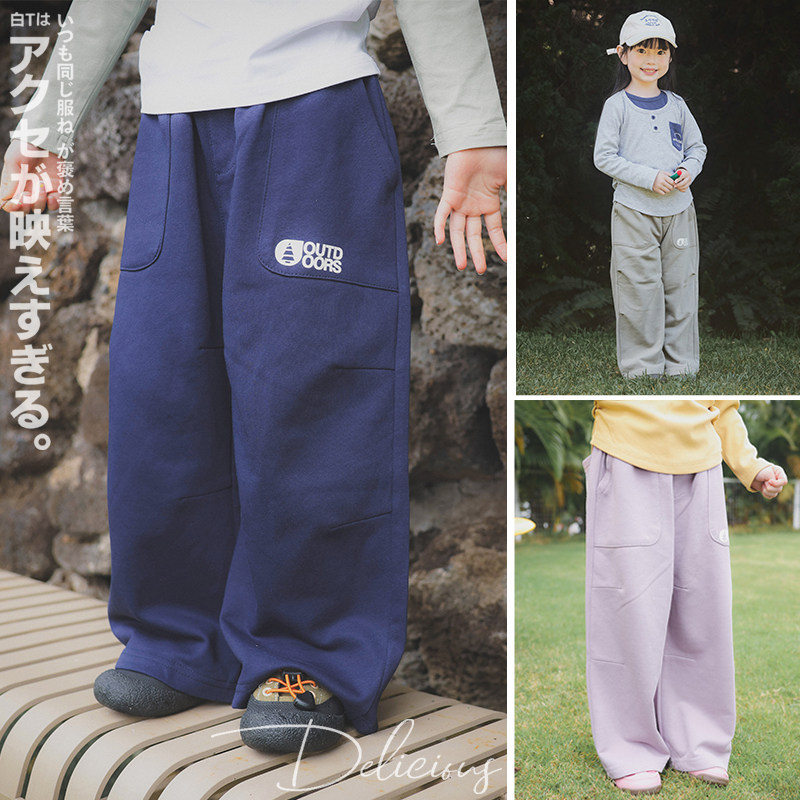山系风女童设计感阔腿卫裤2025春季新款户外儿童百搭直筒宽松长裤