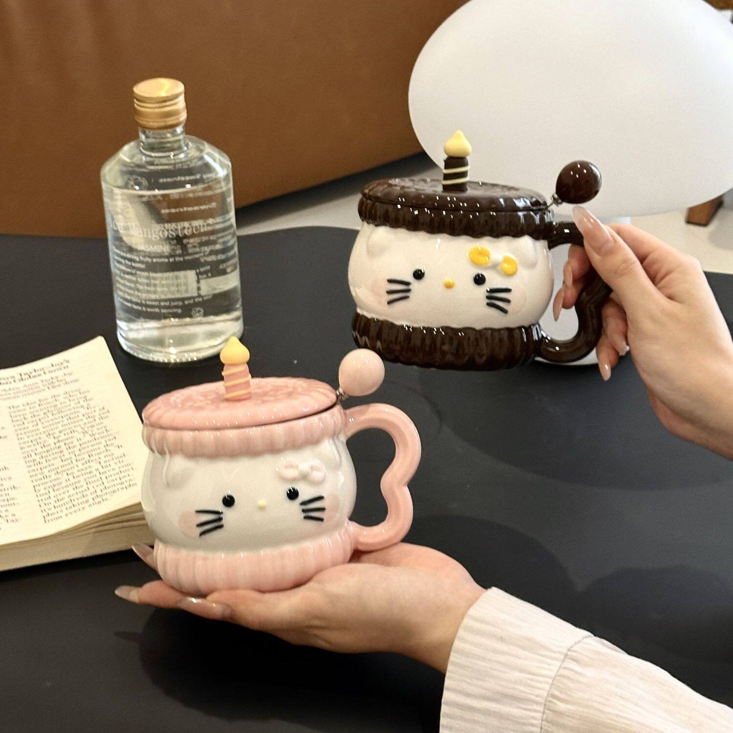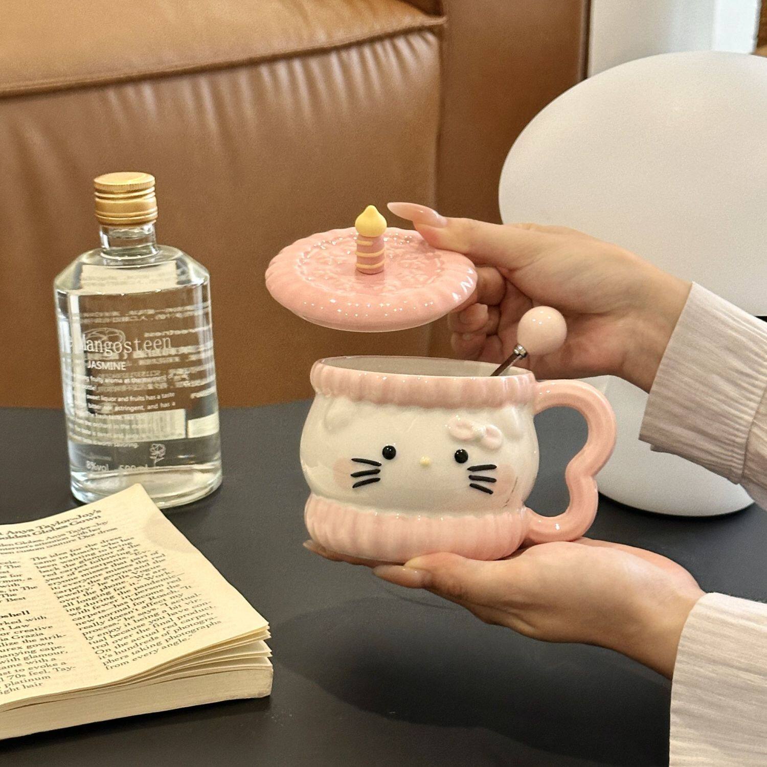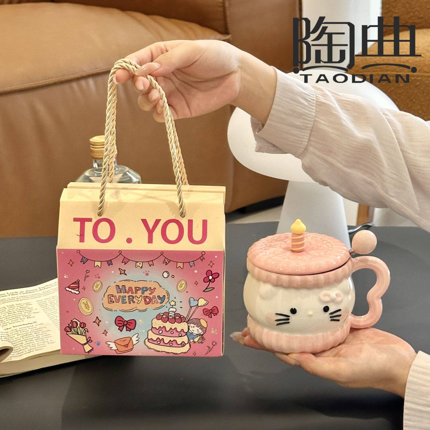 陶典可爱猫咪陶瓷水杯带盖杯子情侣喝水马克杯高颜值生日礼物女生