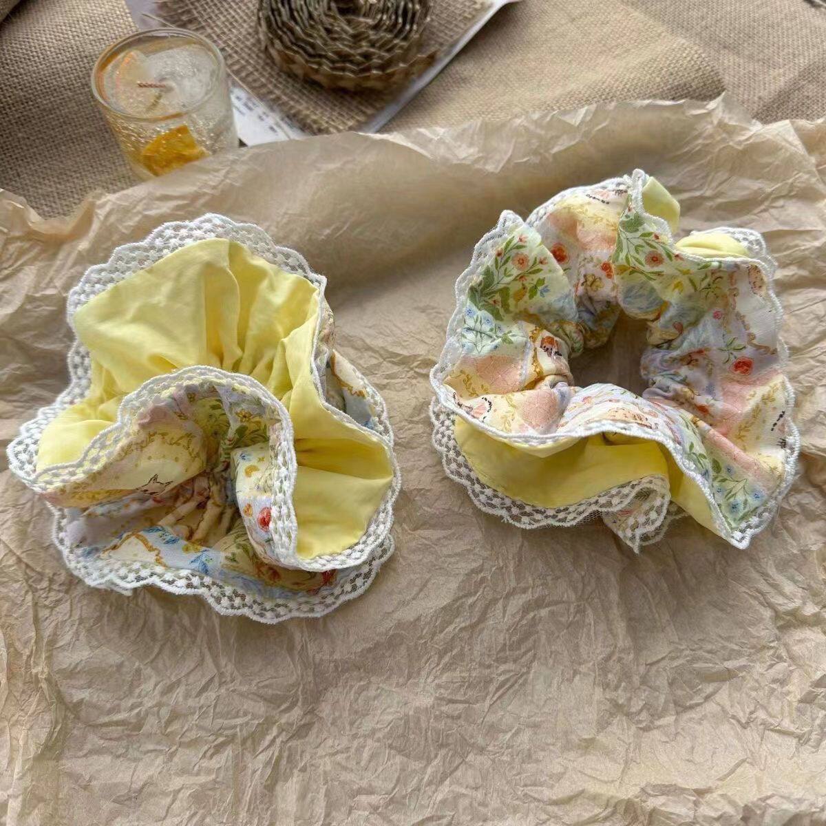 春日油画清新蕾丝甜美可爱少女田园猫咪发圈发绳头花大肠头绳花边