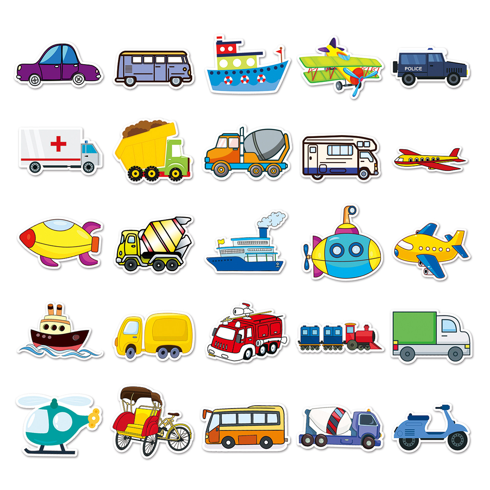 100张不重复交通工具卡通贴纸汽车自行车摩托车飞机轮船涂鸦装饰儿童玩具文具盒水杯相册滑板车pvc防水贴画