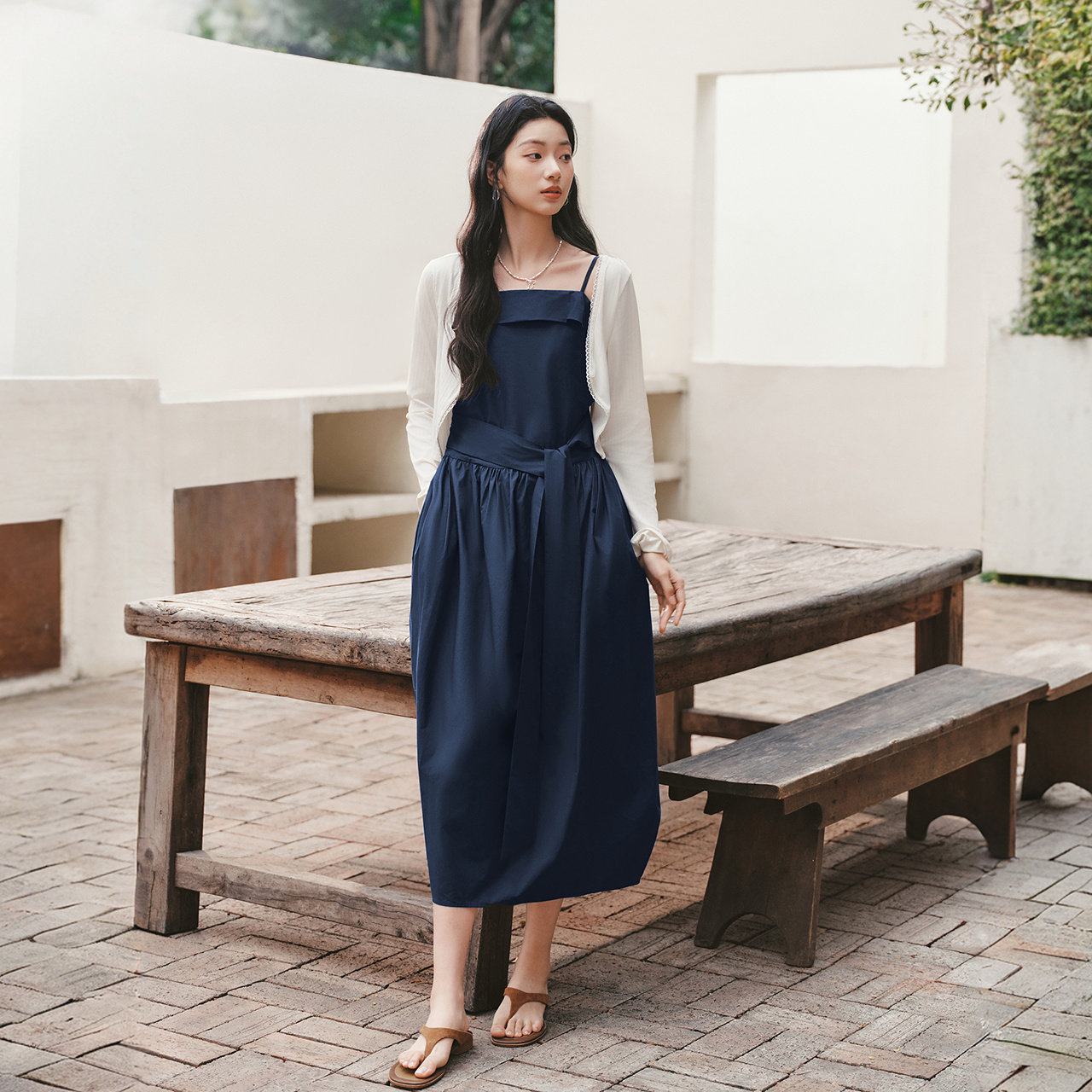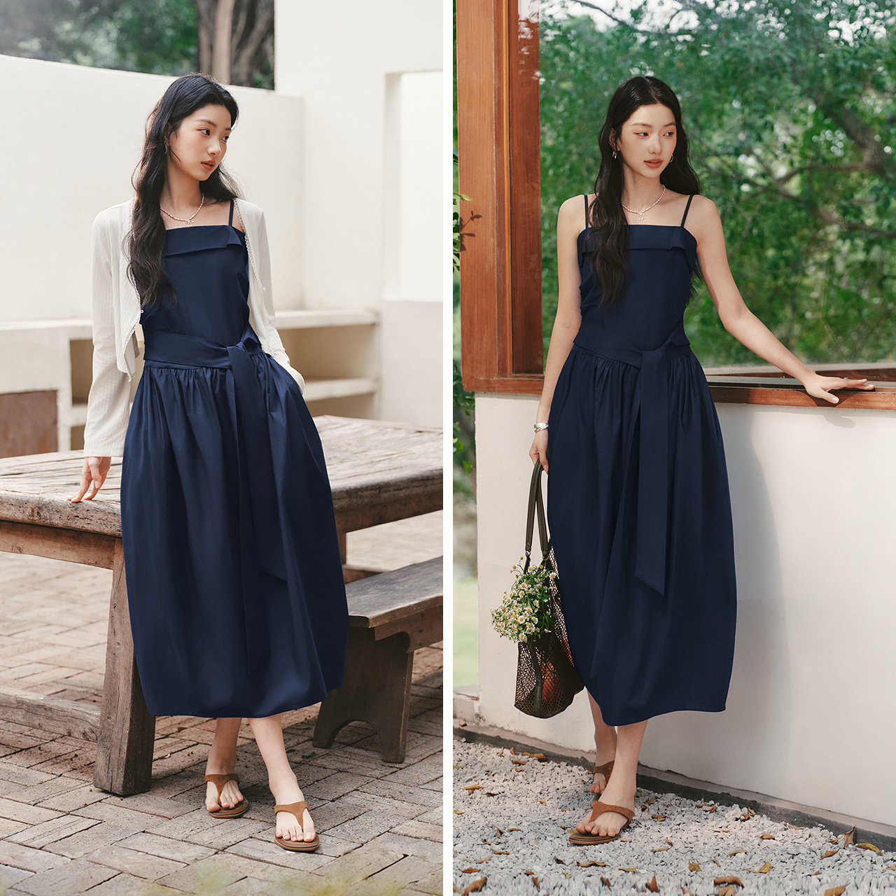 陈都灵|森马连衣裙女夏蝴蝶结纯色抹胸吊带2026新款千金法式长裙