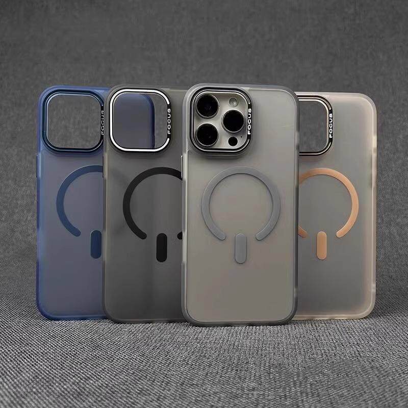 适用苹果16promax强磁吸手机壳iPhone15Pro金属按键12简约13防滑14/11pm半透磨砂肤感16plus防摔ip男女保护套