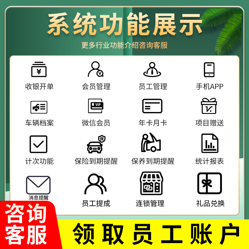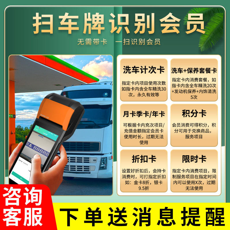 洗车店会员卡管理系统汽车美容修车店保养提醒PVC卡片定制计次充值储值办卡积分手机APP电脑收银软件一体机