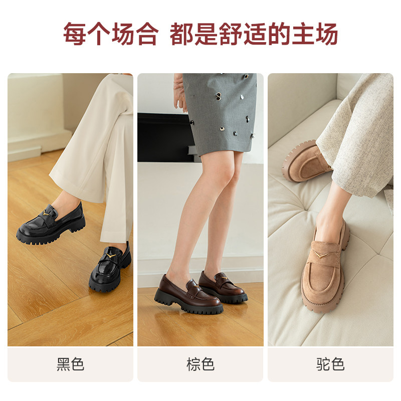 真皮乐福鞋女鞋子2025春秋新款爆款厚底英伦风小皮鞋女黑休闲单鞋