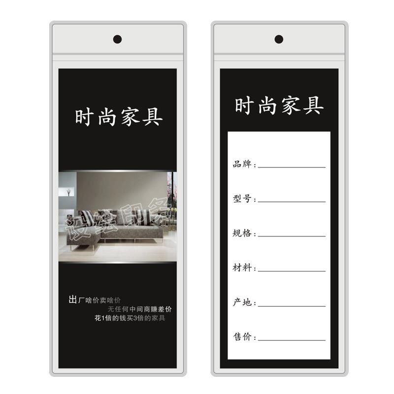 PVC吊牌袋家具标格签袋定制磨砂价格签袋软床价格袋沙发布艺挂牌