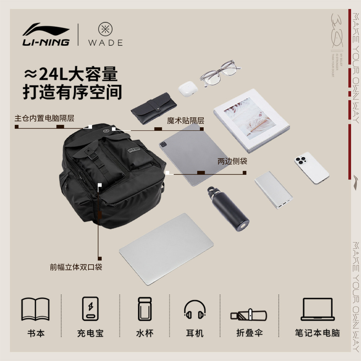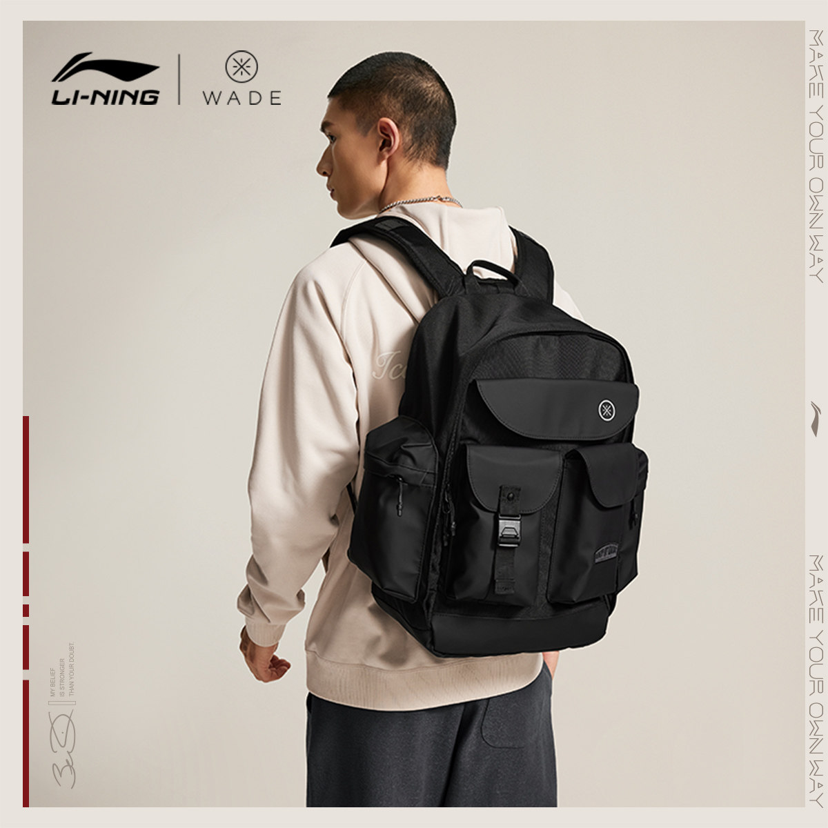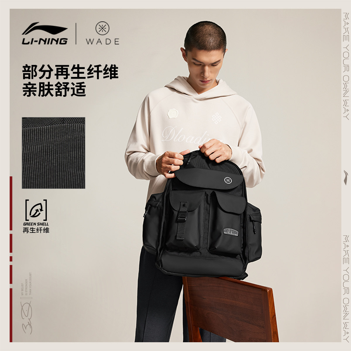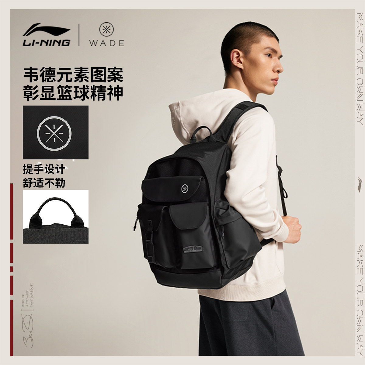 李宁双肩包男女2026新款官方正品韦德轻便背包书包学生环保运动包