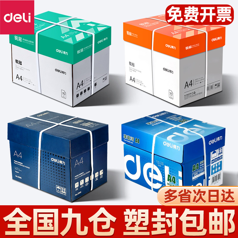 得力A4纸打印复印纸70g整箱5包装500张办公用品a4打印白纸双面草稿纸学生用a4打印纸80g打印纸a4一箱批发包邮