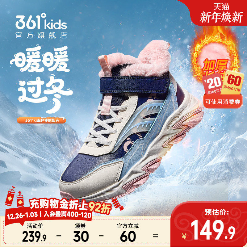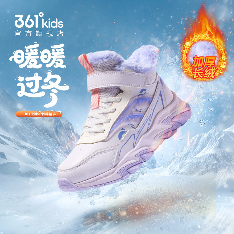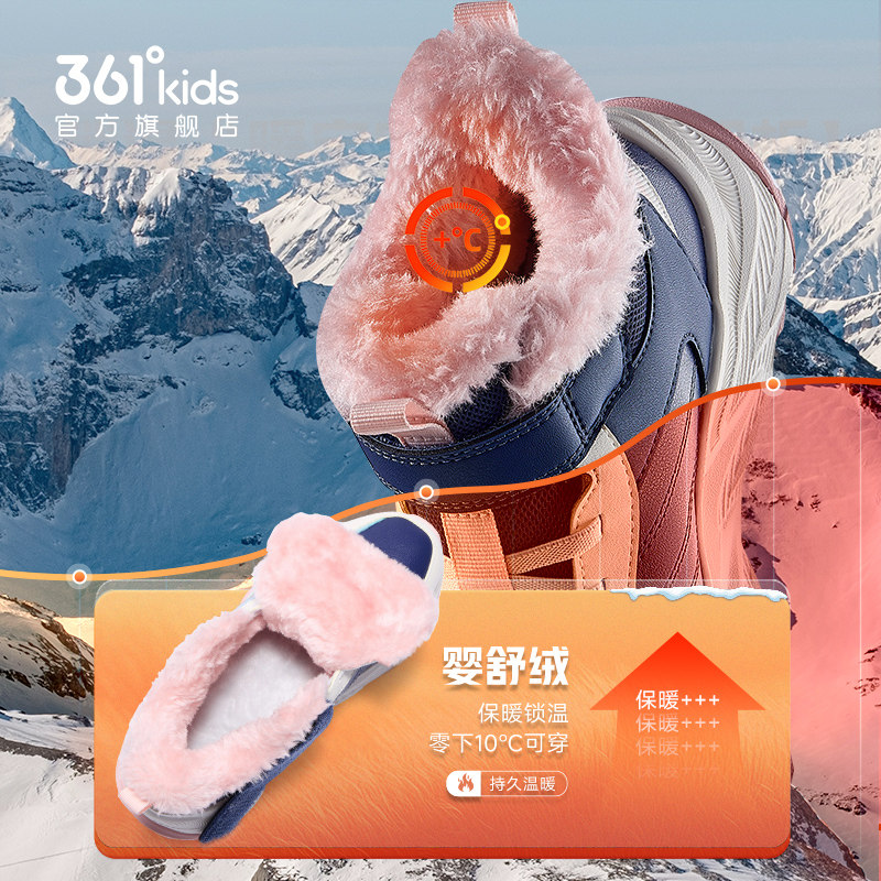 361度童鞋女童棉鞋长绒加厚保暖冬季新款大棉男童鞋子儿童运动鞋