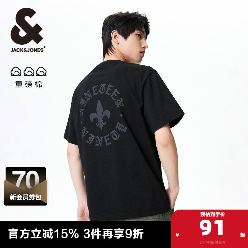 杰克琼斯男士短袖T恤2025年夏季复古哥特打底衫重磅纯棉情侣装T恤