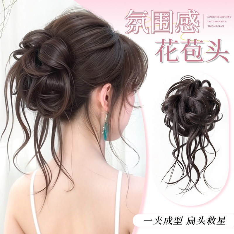 龙须丸子头假发发圈仿真发花苞头盘发神器抓夹蓬松假发包一体式