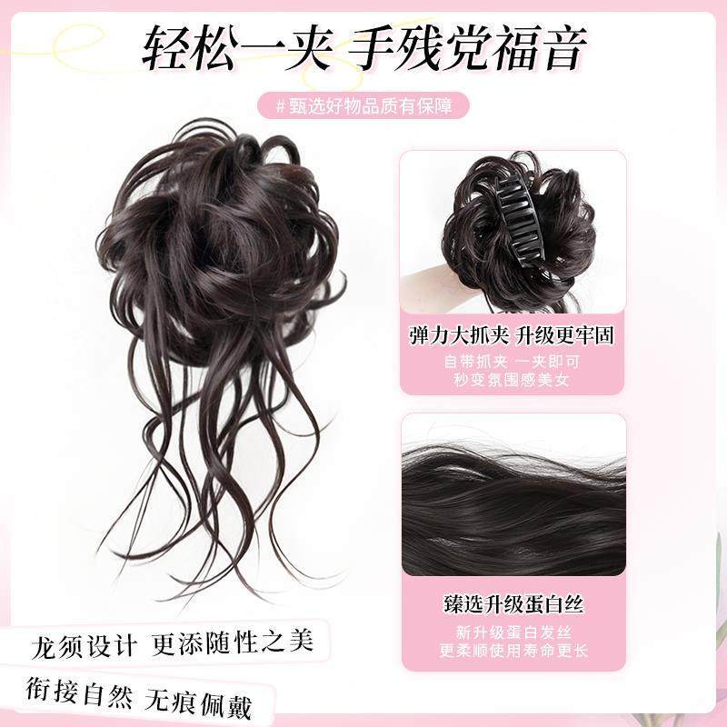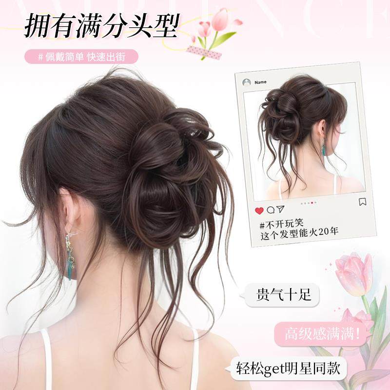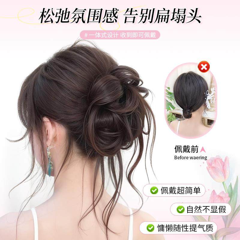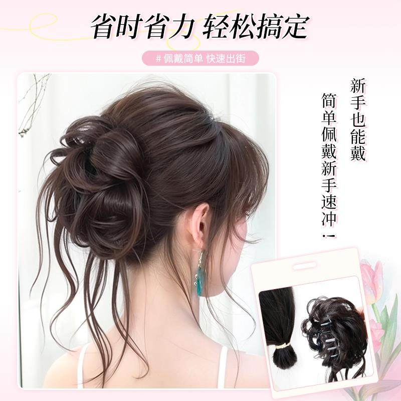 低扎丸子头假发鸡毛头抓夹盘发发包慵懒感造型头饰自然蓬松后脑勺