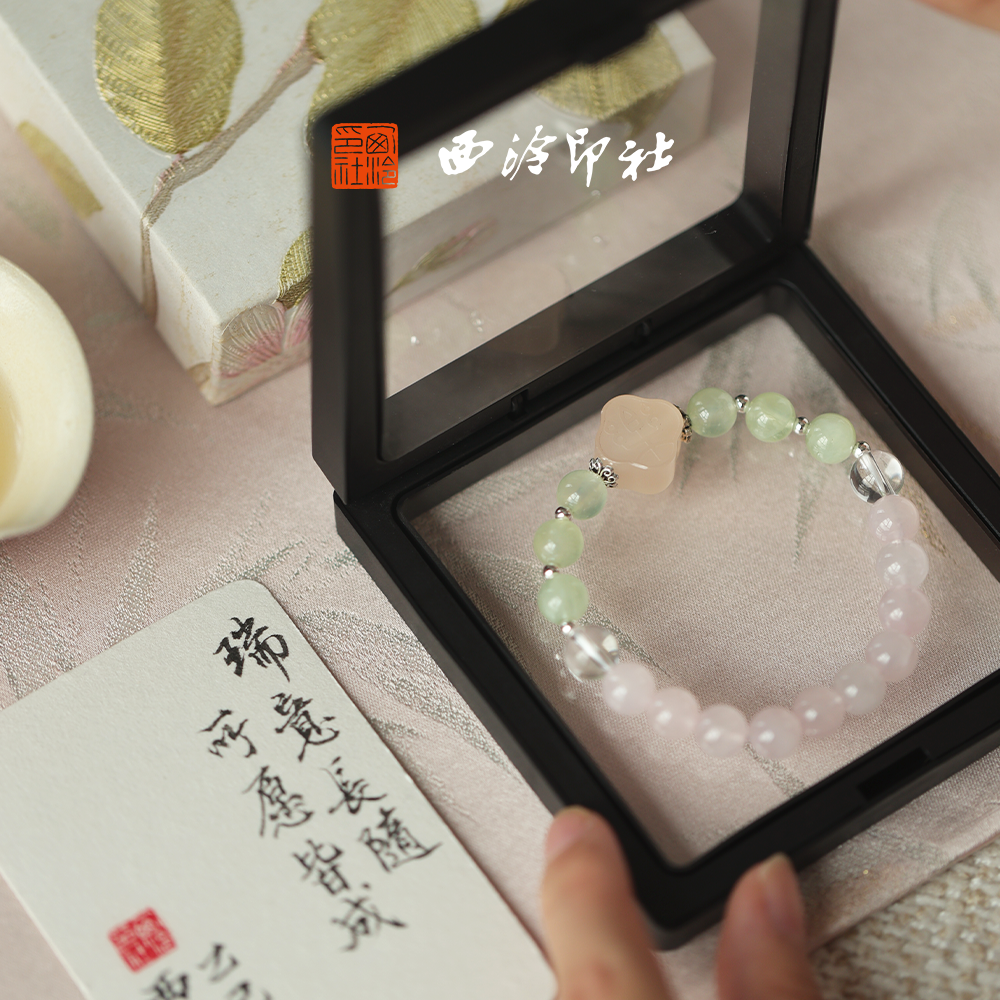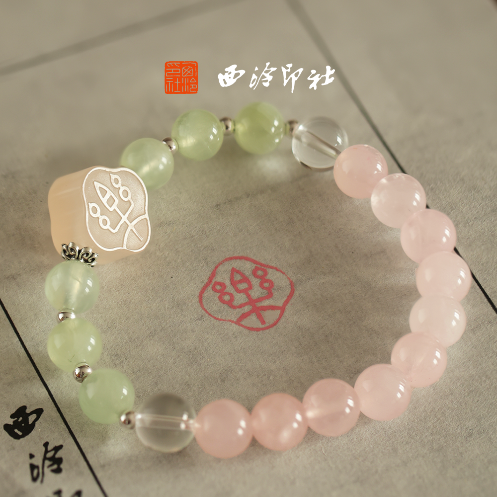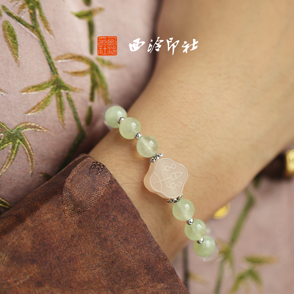 西泠印社海棠系列国潮印章手串桃花粉手链穿戴过年春节闺蜜国风生日情侣手链生日礼物企业定制伴手礼圣诞送礼