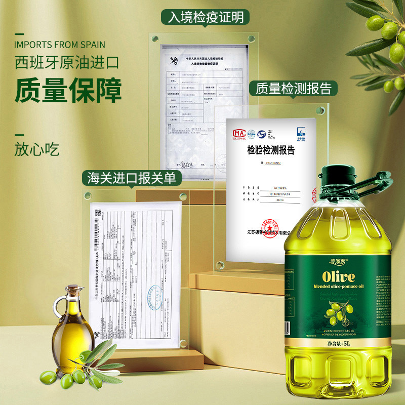 纯正橄榄油5L装特级初榨橄榄油无添加炒菜低脂健身食用油官方正品