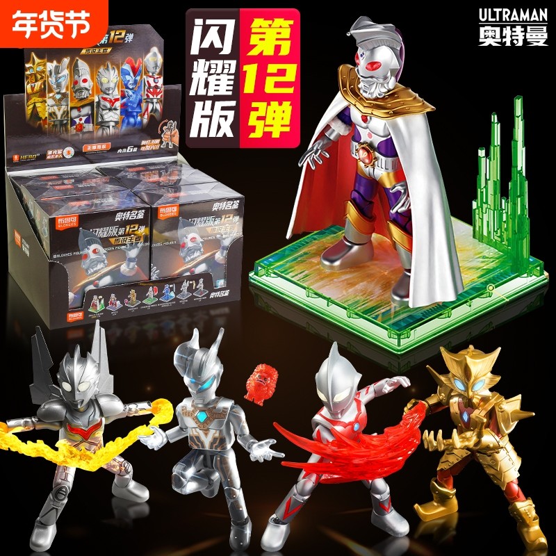 新品布鲁可奥特曼第12弹闪耀版拼装积木人可发光盲盒潮玩手办摆件