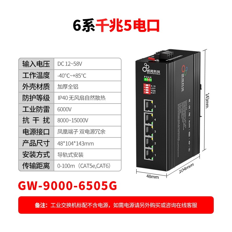 感闻工业级交换机千兆8口poe交换机监控专用导轨式5口工业网络交换机分线器环网管理型交换机百兆6000V防雷