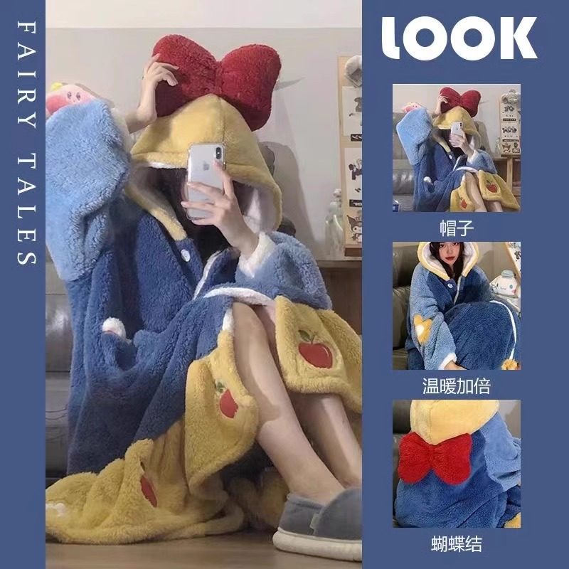 可爱小丑鱼睡衣长款女新款秋冬季珊瑚绒睡袍网红加厚珊瑚绒家居服