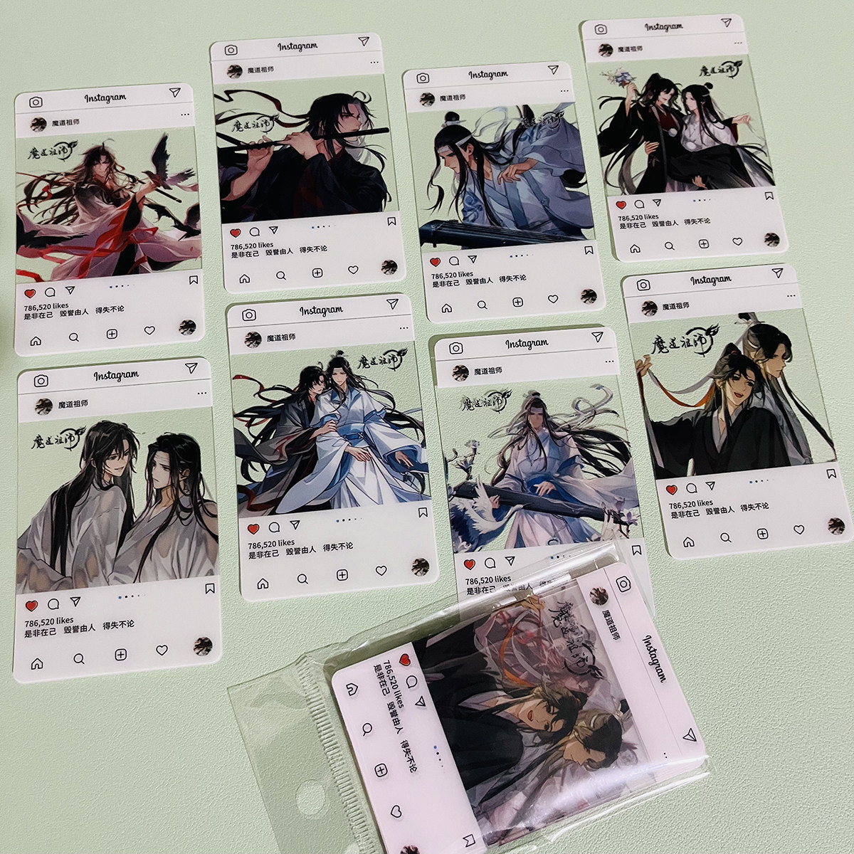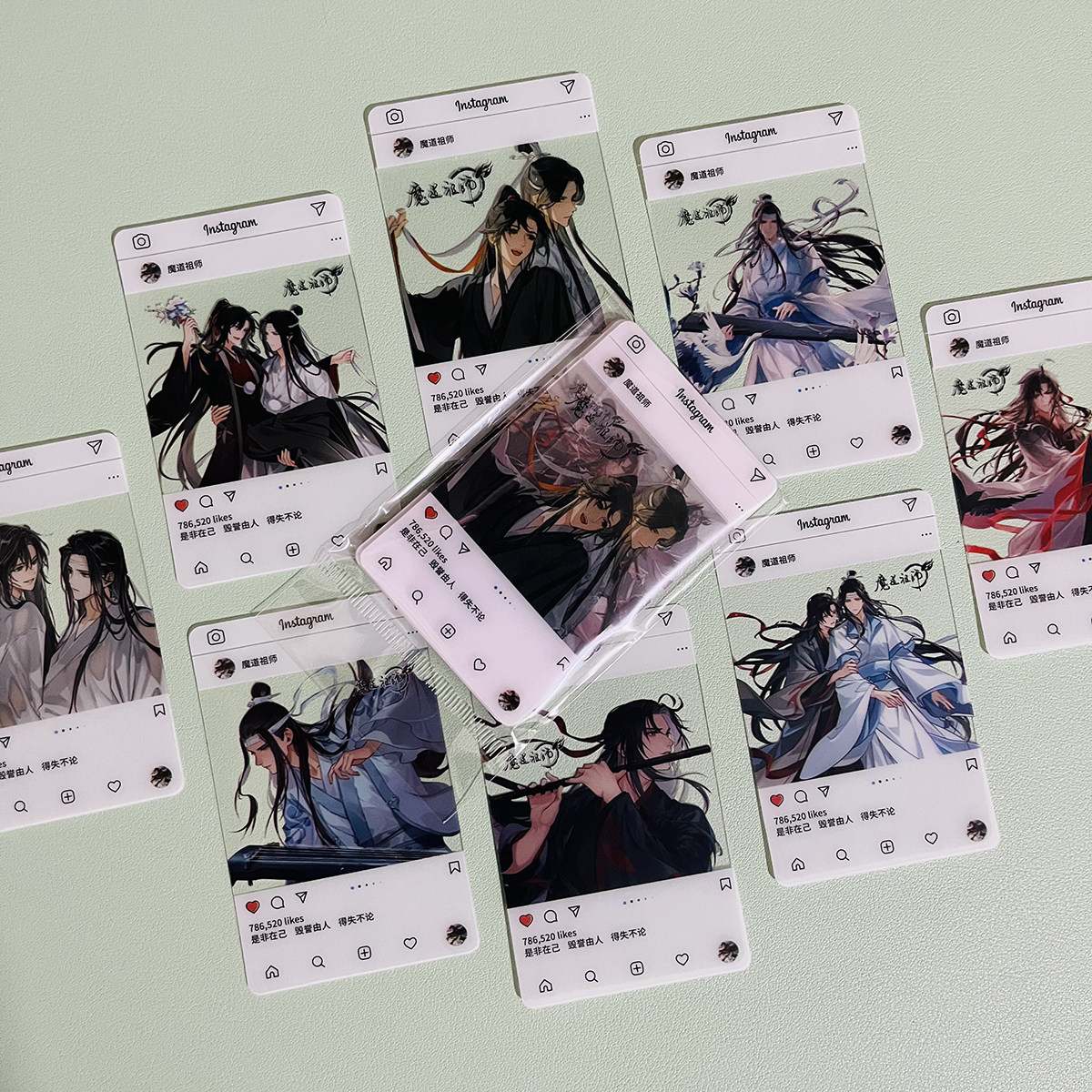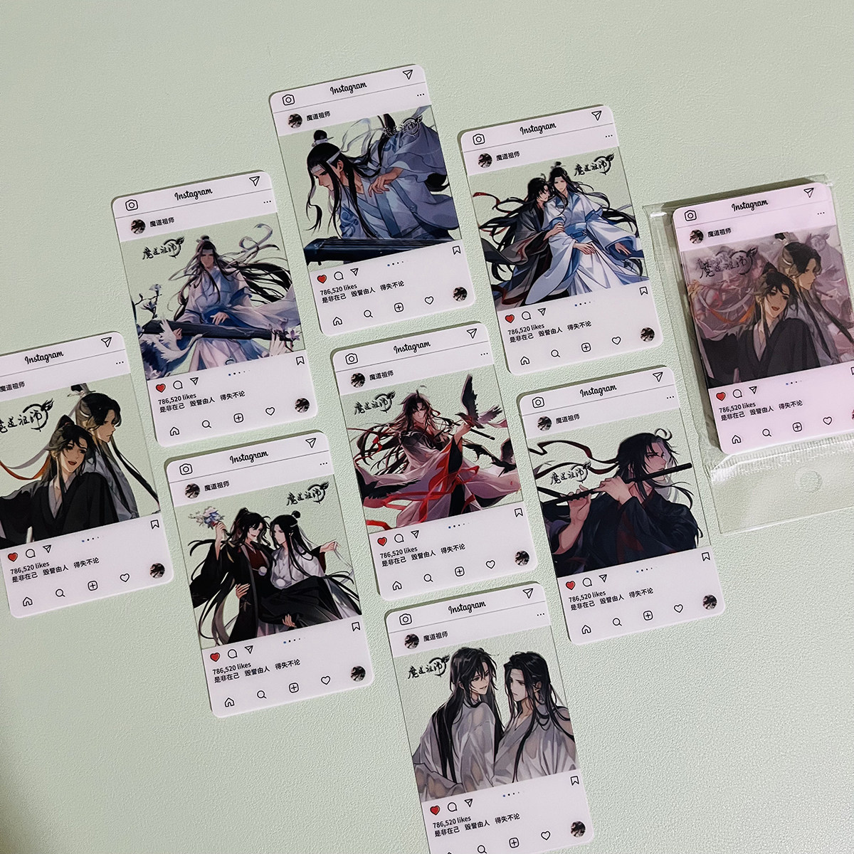 魔道祖师透卡 蓝忘机魏无羡二次元动漫周边8张拍立得透明小卡片