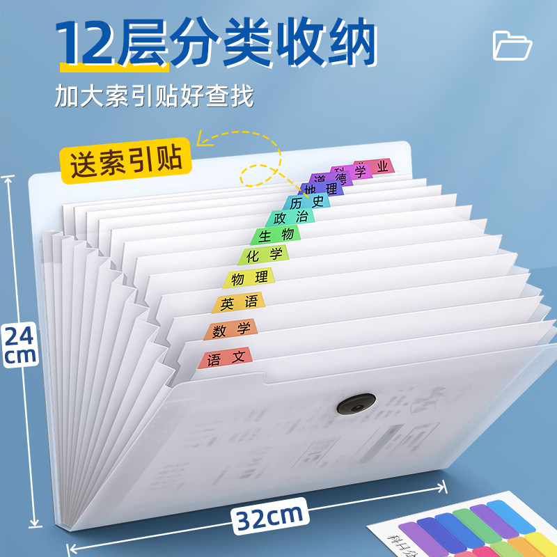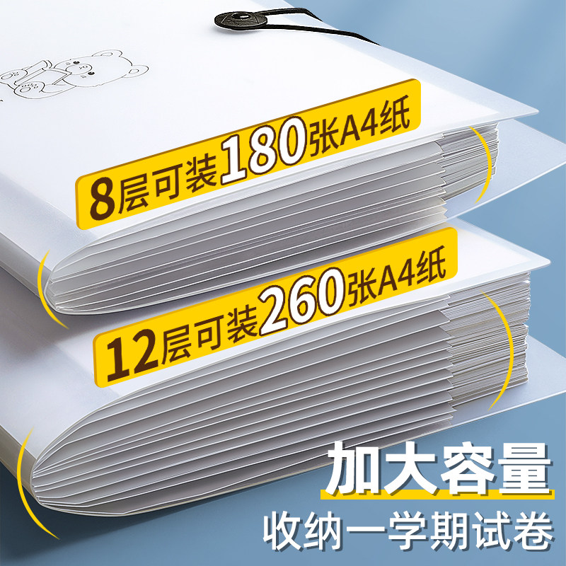 试卷收纳袋文件夹专用文件袋a4纸卷子整理夹子小学生初中生大容量多层风琴包卷纸分类神器资料册学习科目透明