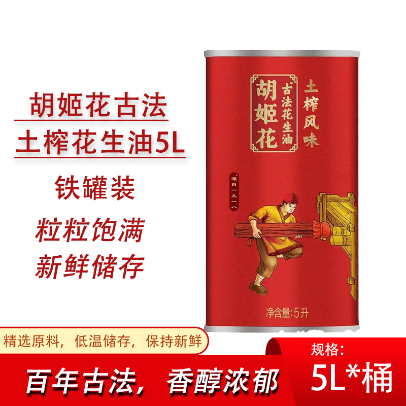 【临期】胡姬花古法土榨花生油5升铁罐装一级品质食用油量大送礼