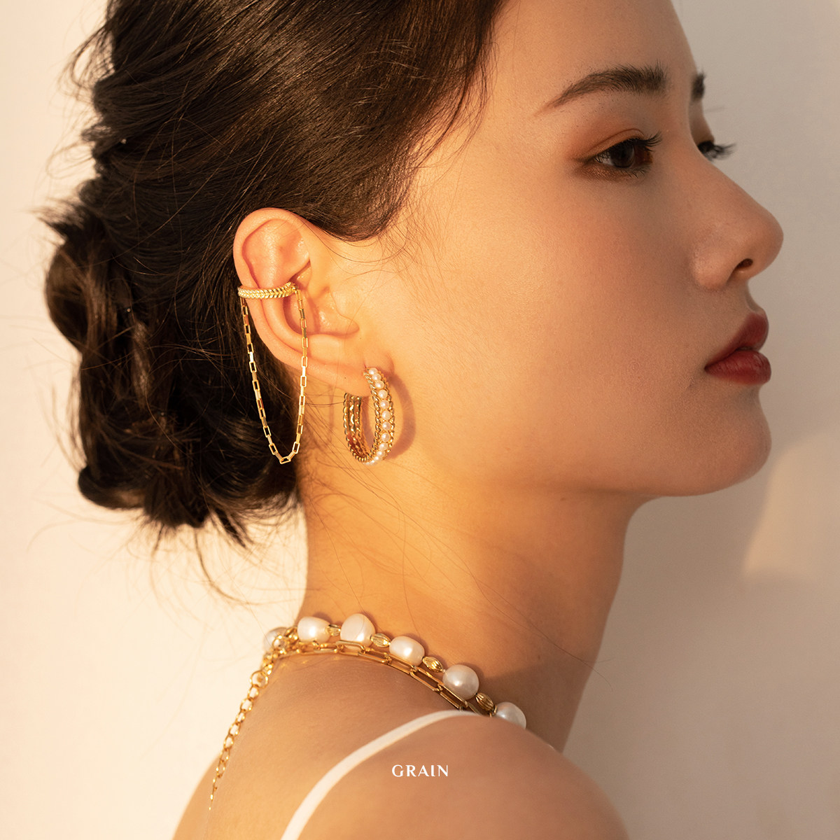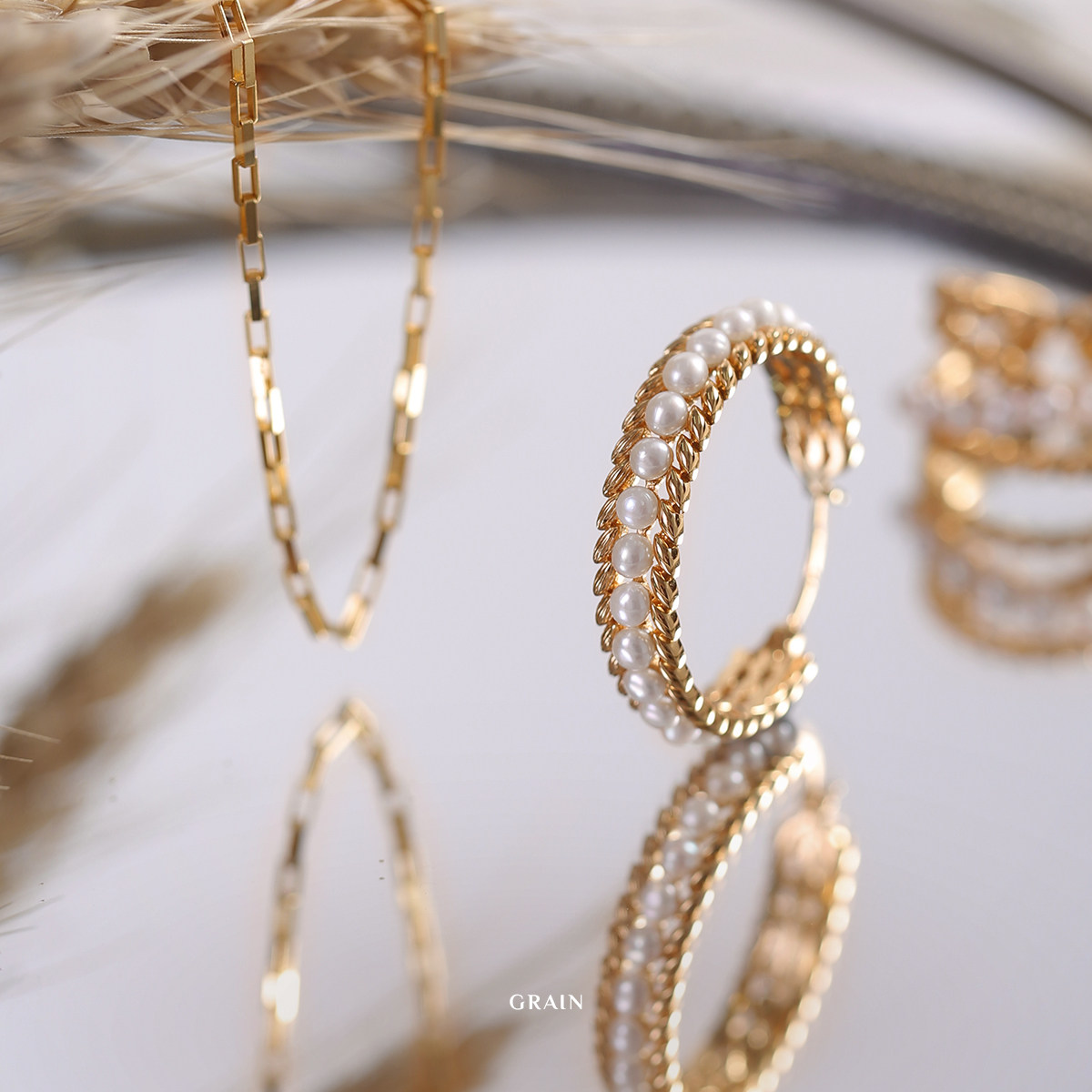 MGS/曼古银麦穗镀18K金珍珠高级耳环925银圈圈耳饰复古耳饰女