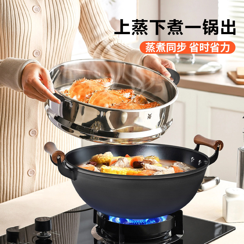 德国三头鹰无涂层钛锅不粘锅电磁炉燃气纯钛炒锅多功能家用炒菜锅