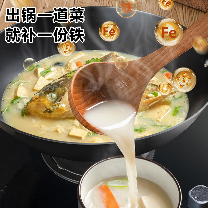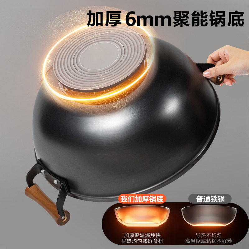 炊大皇铁锅家用无涂层不锈炒锅燃气灶专用炒锅炒菜锅平底锅极铁锅