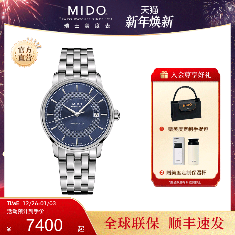 Mido美度手表男士贝伦赛丽印记款休闲钢带表全自动机械男表情侣款