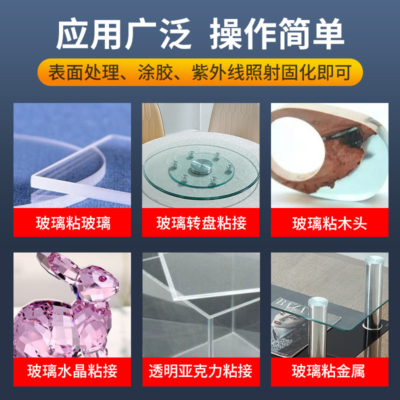 UV无影胶水 粘钢化玻璃茶几金属水晶装饰吊灯玻璃奖杯紫外线固化粘合剂透明亚克力专用快干环保强力无痕胶水