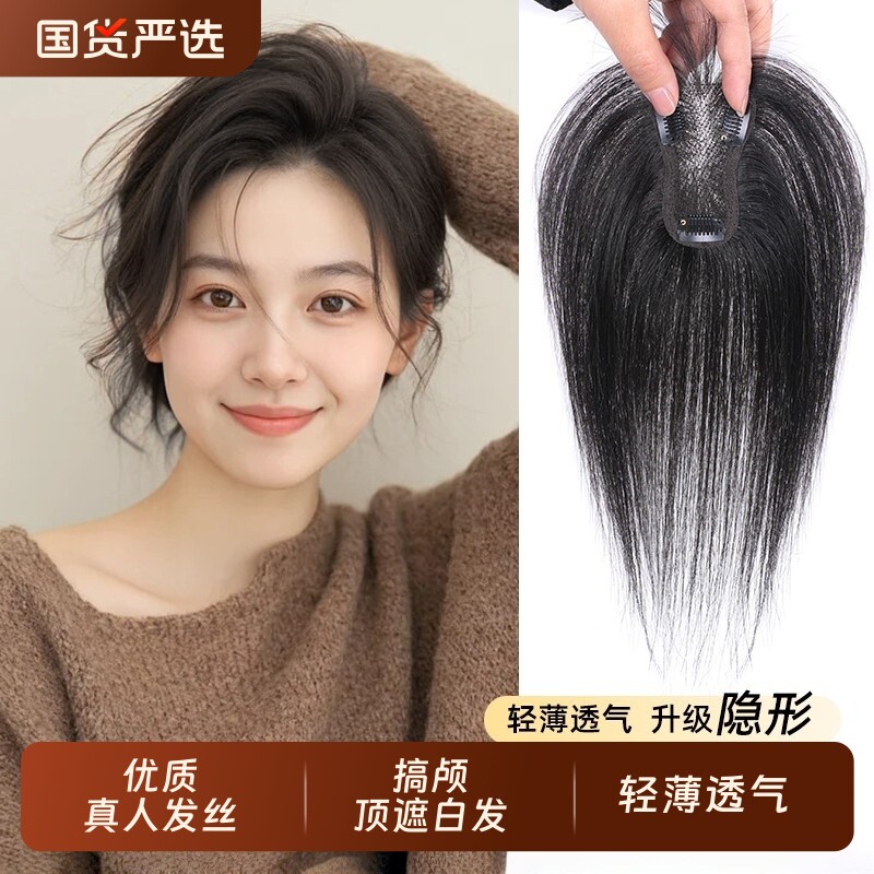 假发女片头顶补发蓬松增发量无痕隐形遮白发轻薄透气真发头顶补发