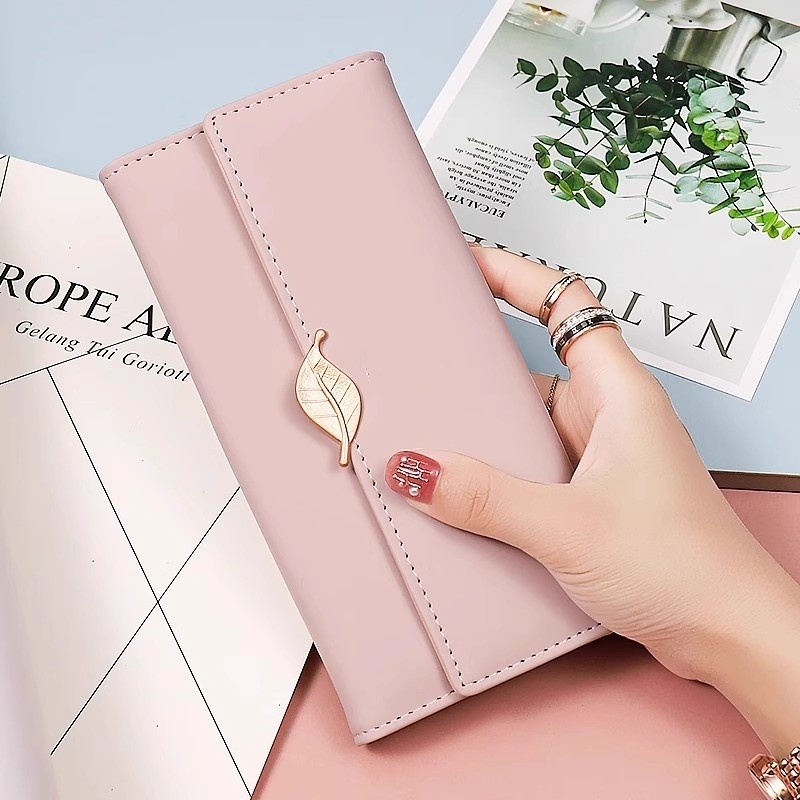 钱包女士2025新款爆款大容量女士长款钱包小清新叶子卡包手拿包女