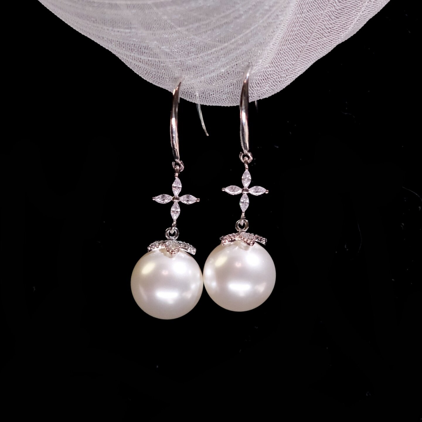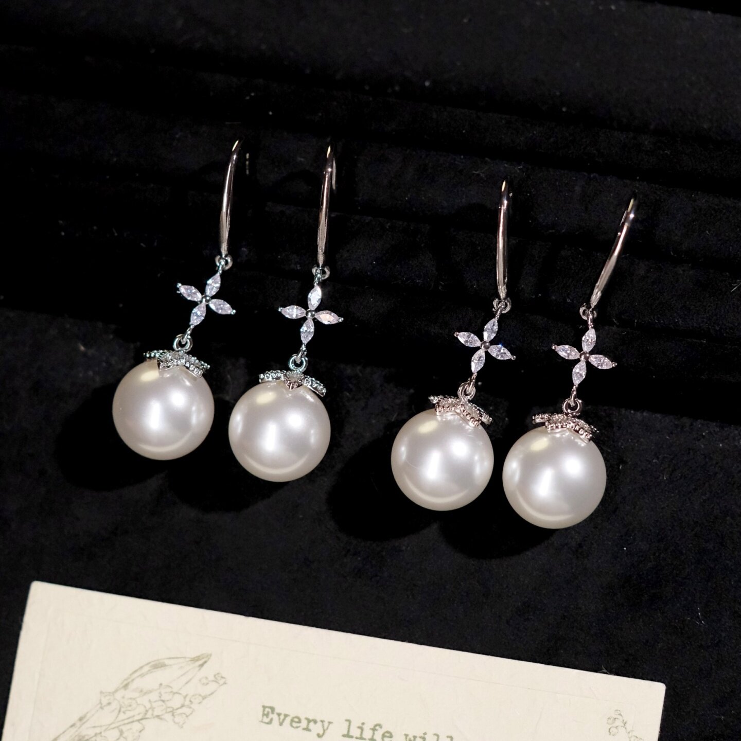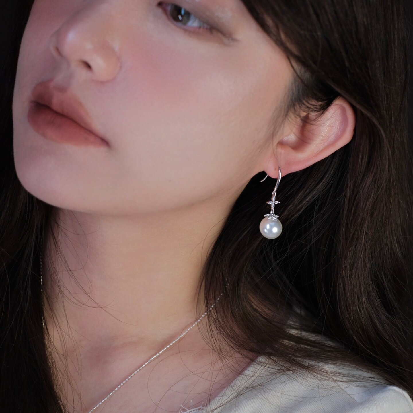 《银蕊明珠》精致宫廷风优雅施家澳白珍珠镶钻花朵耳环耳饰耳夹女