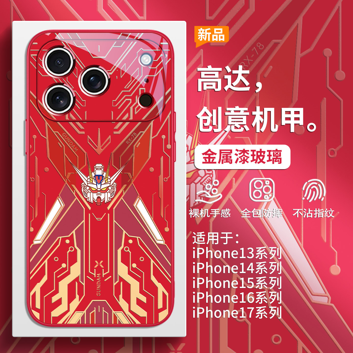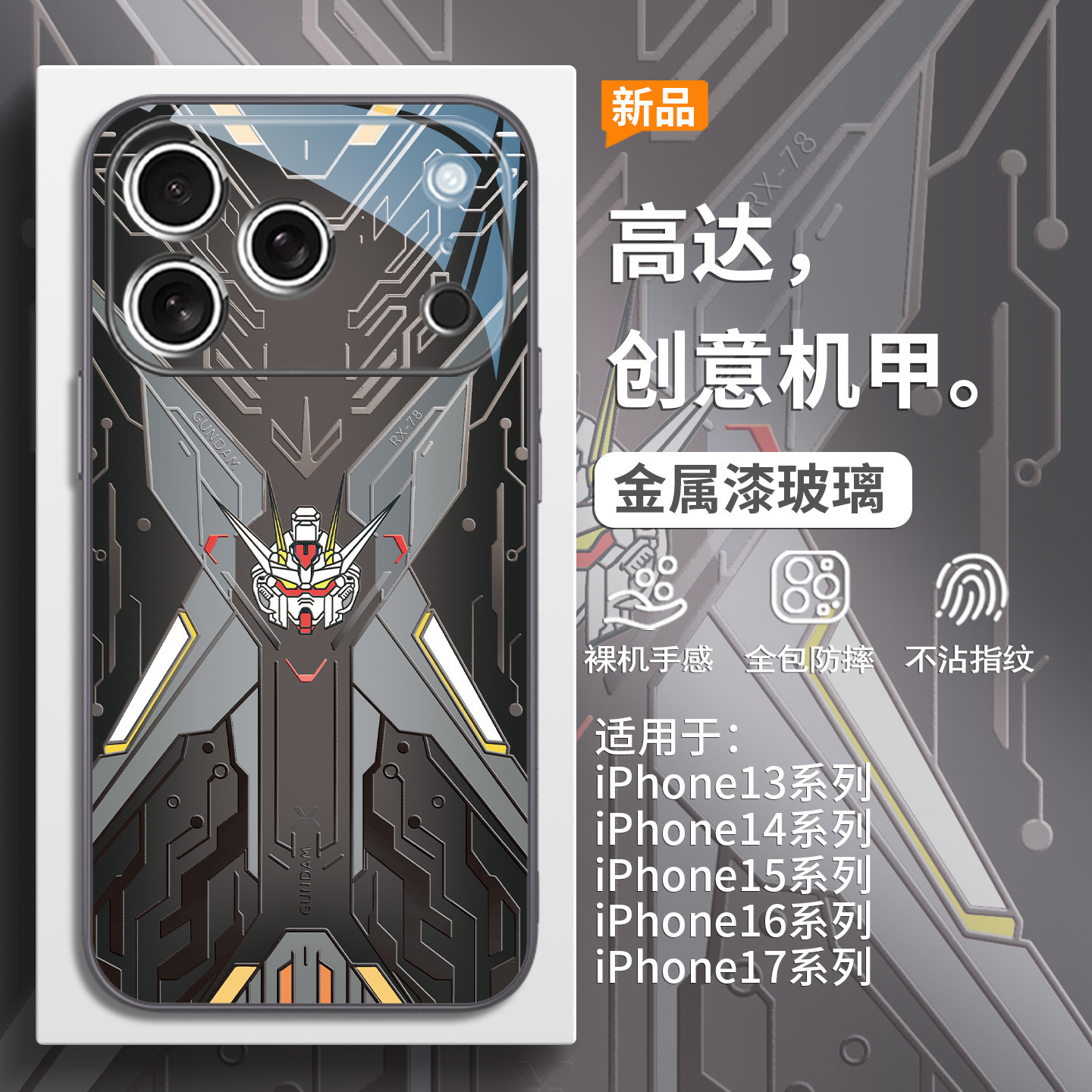 适用iPhone17promax橙色手机壳苹果16pro新款Air机甲高达15plus创意高级感14男士酷炫13不会撞壳12玻璃全包