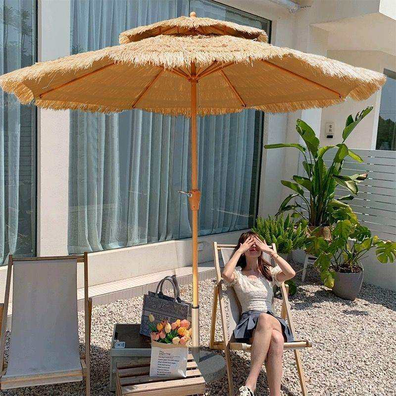 户外遮阳伞仿真稻草伞庭院花园阳台农家乐民宿山庄烤吧网红茅草伞