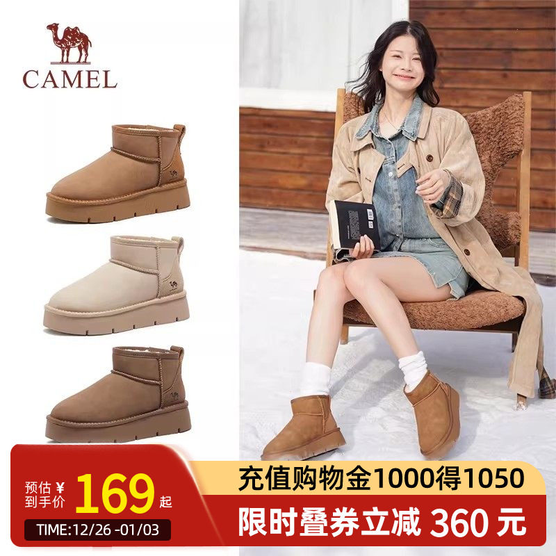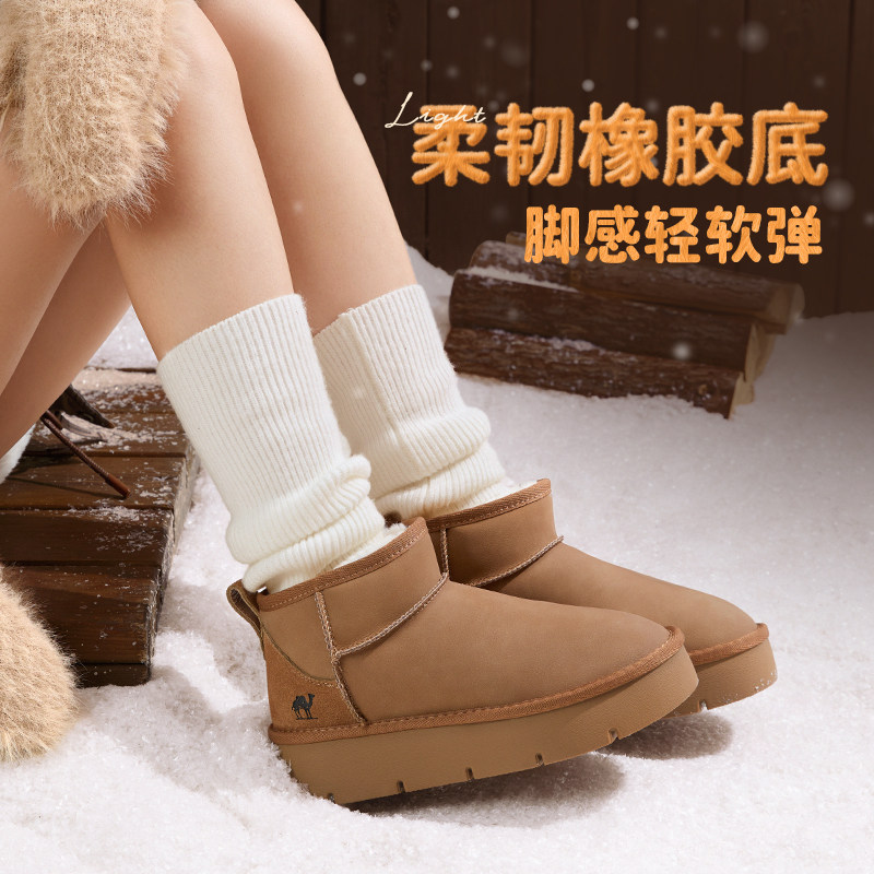 骆驼雪地靴女鞋2025冬季新款加绒保暖棉鞋女加厚东北厚底增高短靴
