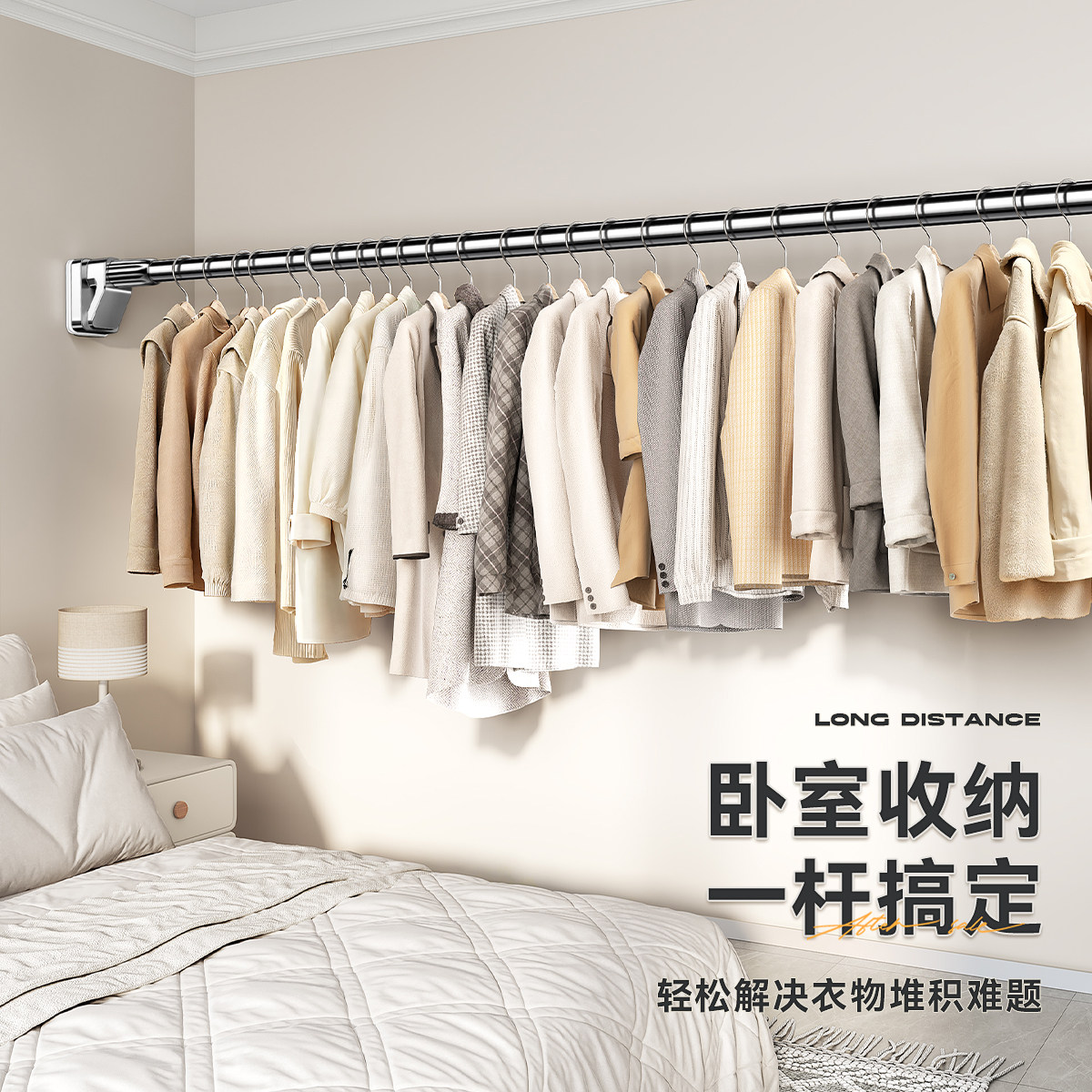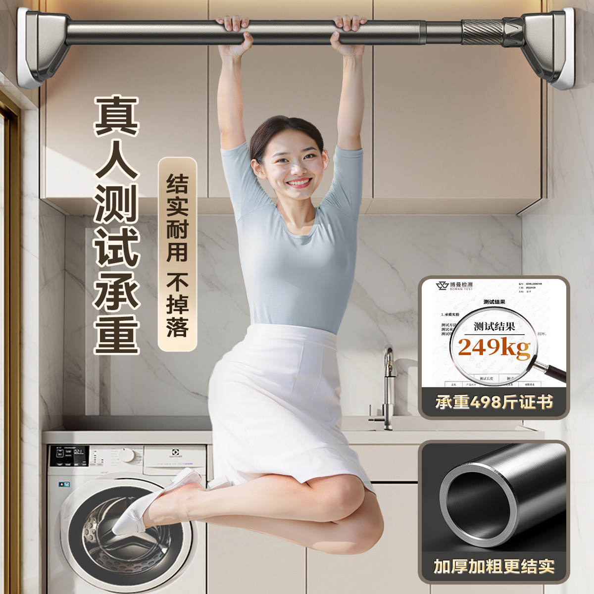 免打孔伸缩杆晾衣杆阳台固定不锈钢晾衣架窗帘衣柜卫生间墙上撑杆