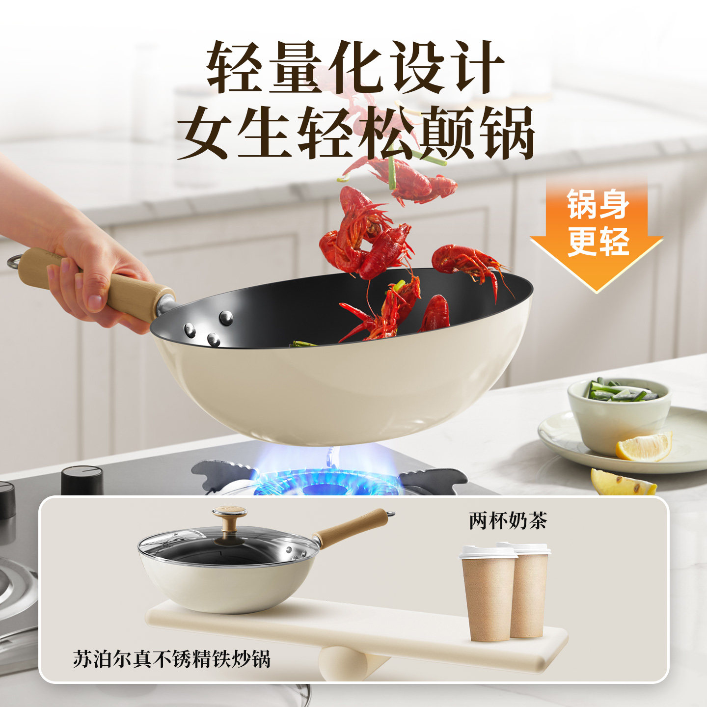 苏泊尔铁锅无涂层炒锅老式家用炒菜锅免开锅精铁熟铁锅燃气电磁炉