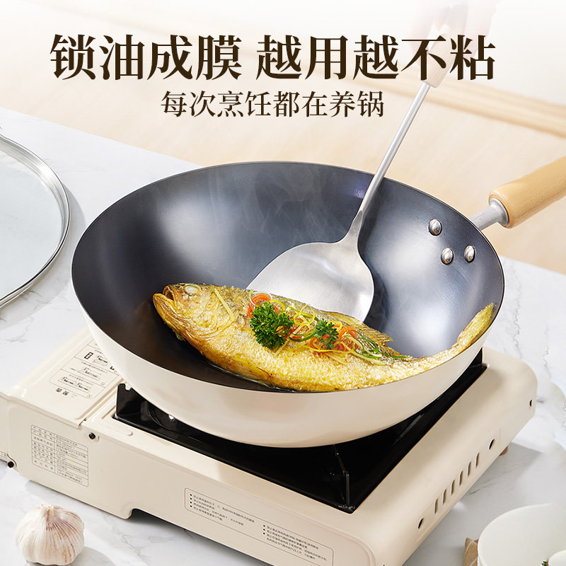铁锅官方旗舰炒菜锅老式炒锅铁锅家用不粘锅无涂层燃气灶适用
