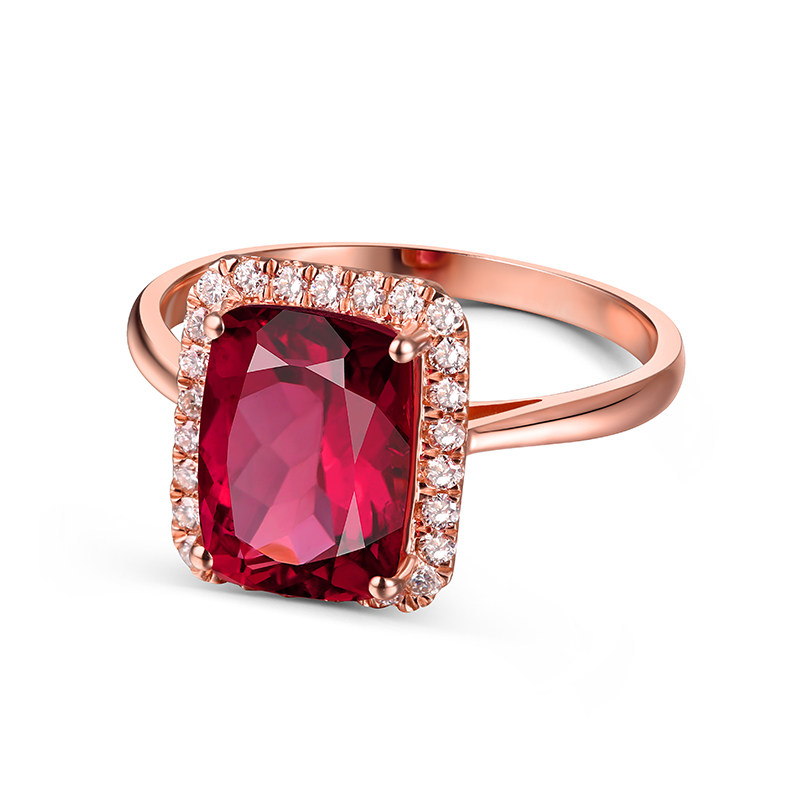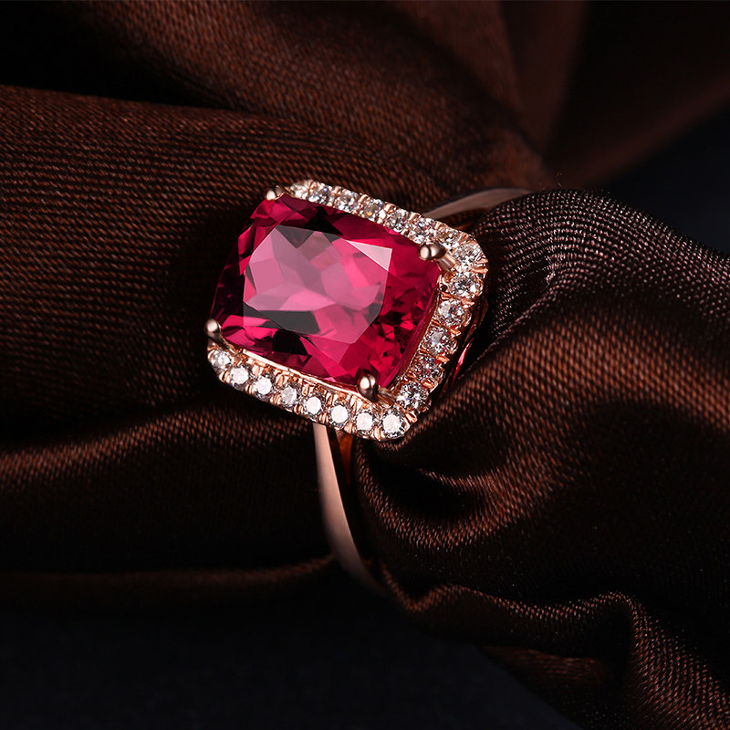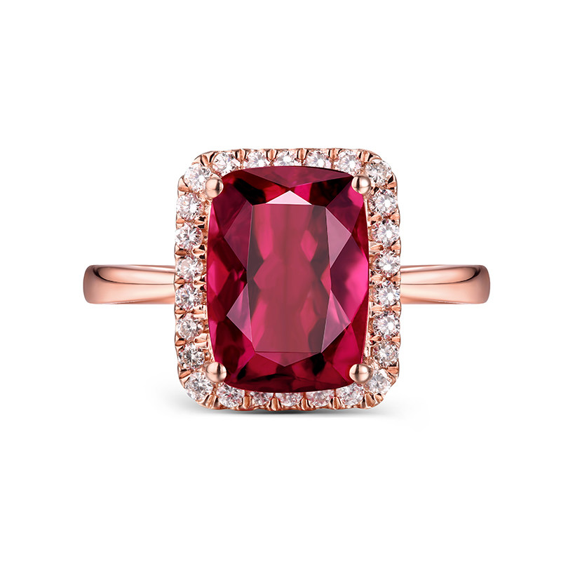 蜜安琪 1.0~2.65克拉天然红碧玺戒指 18K金彩色宝石镶钻石戒指女