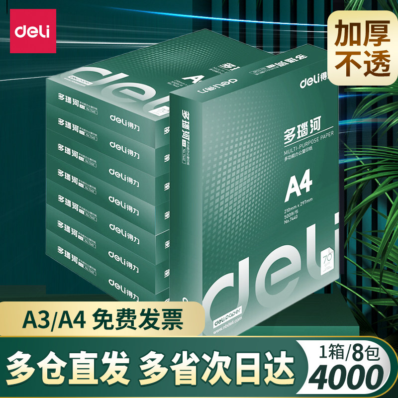 得力多瑙河A4复印纸70g双面打印纸a4包邮学生用草稿纸a4纸500张a3纸实惠装整箱办公用品a四纸4a纸白纸8包装