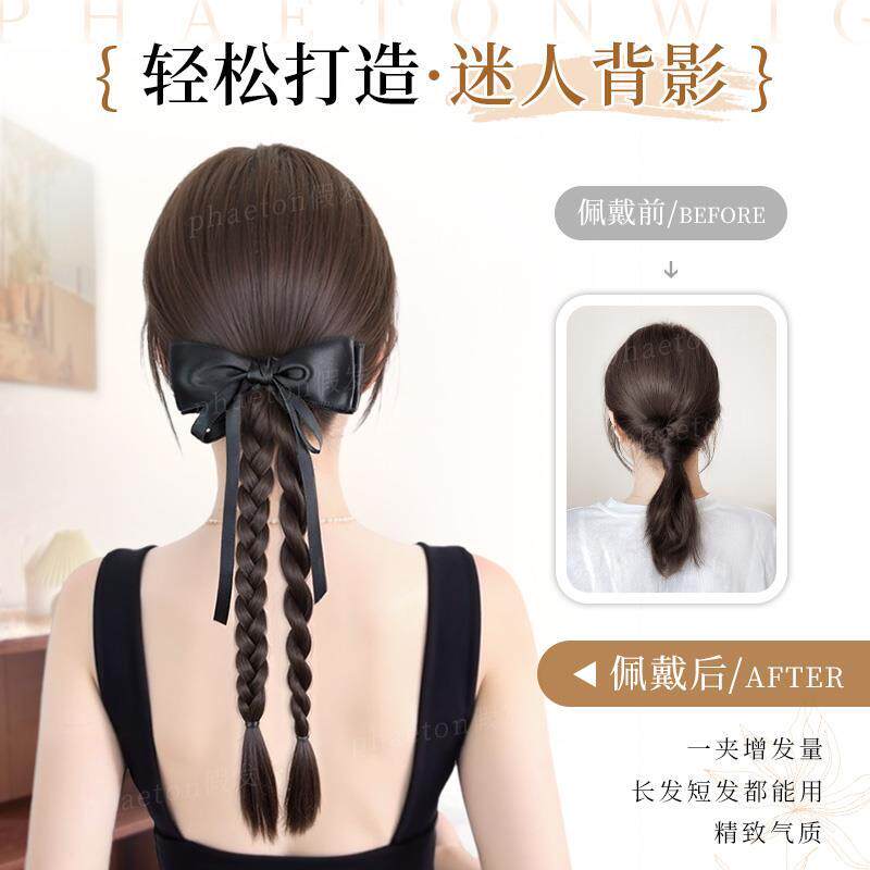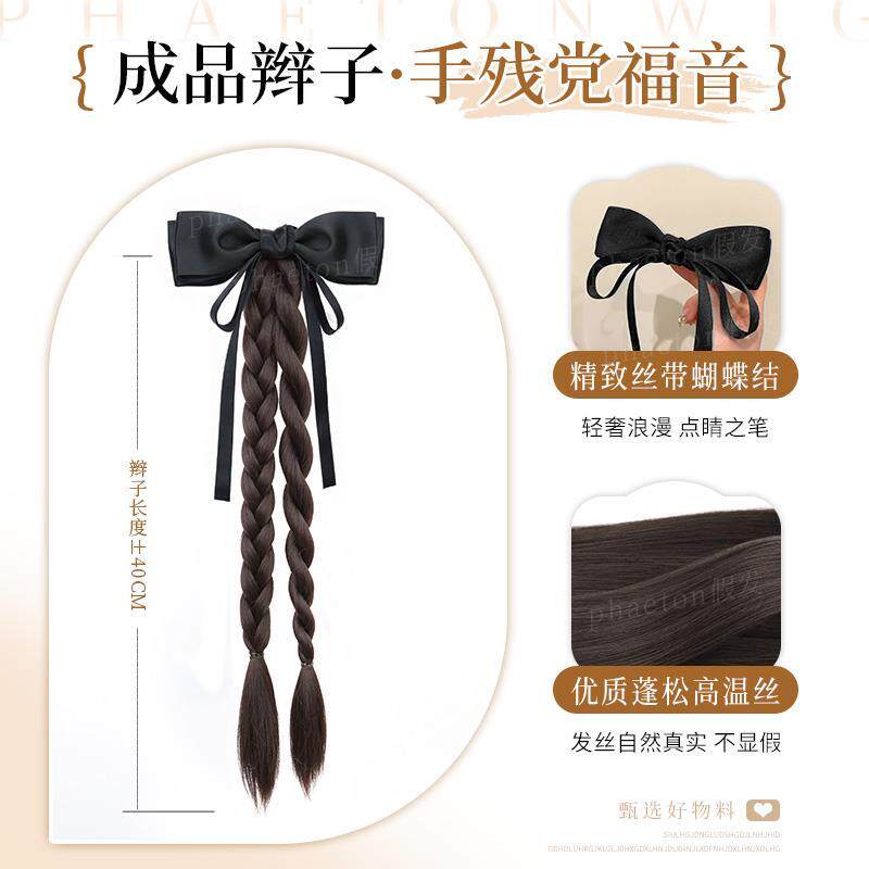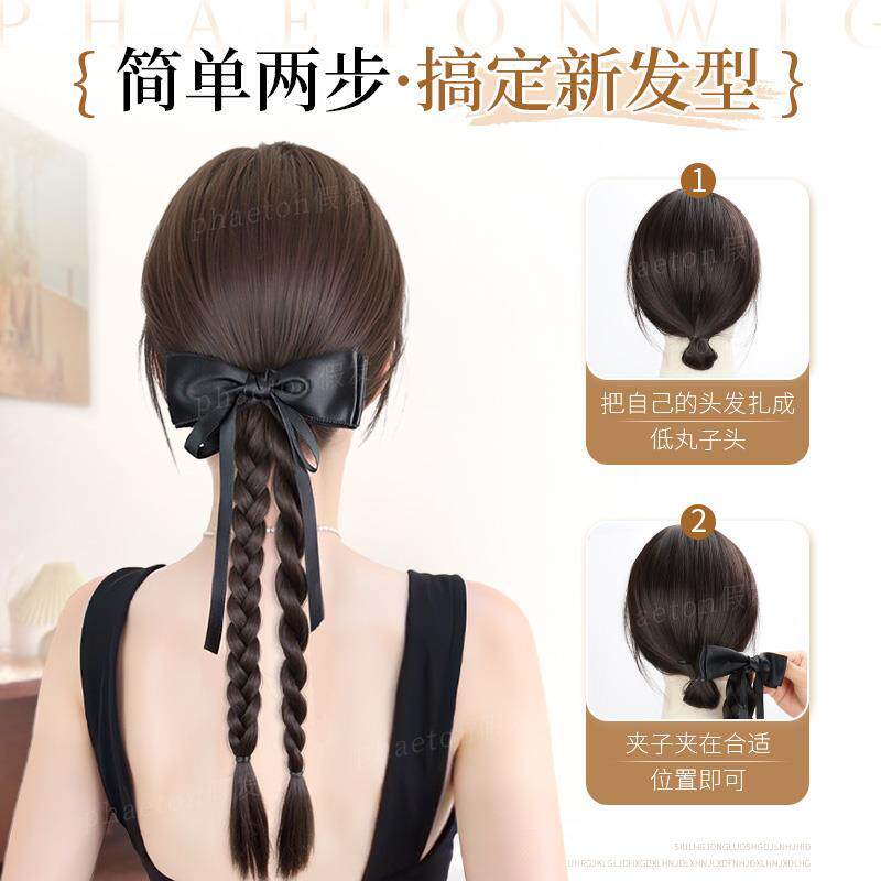 假发辫子女低马尾自然仿真发丝带抓夹双麻花长辫子新中式发饰假发