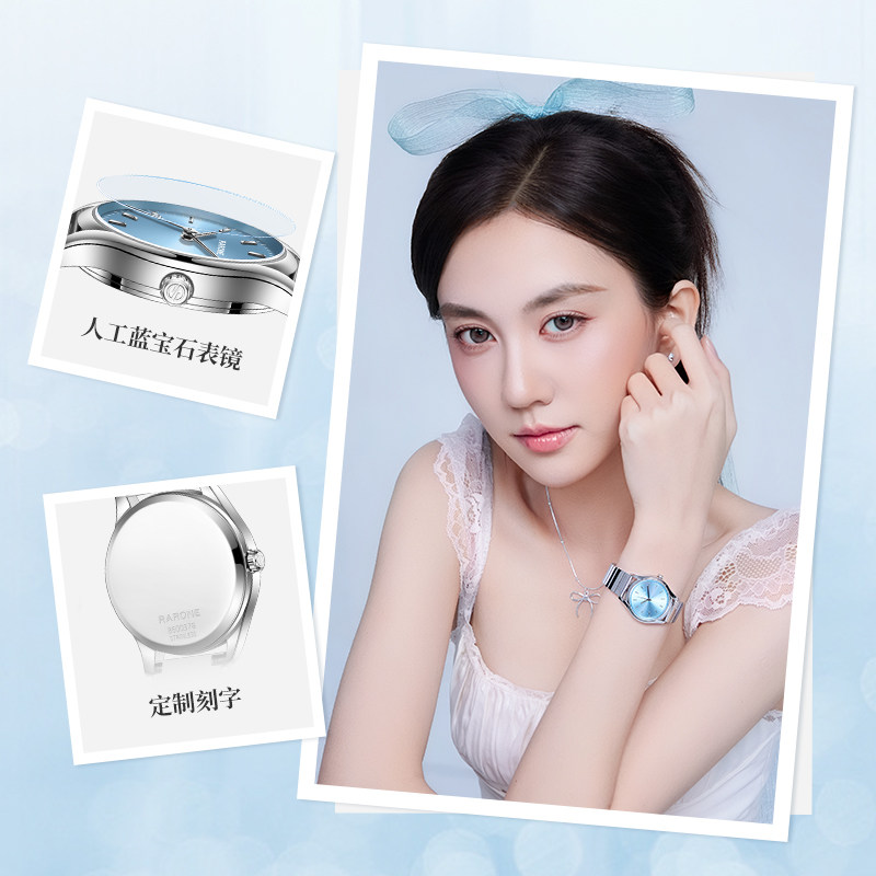 情人节礼物丨Rarone雷诺情侣表简约蓝灰商务时尚石英对表纪念礼物