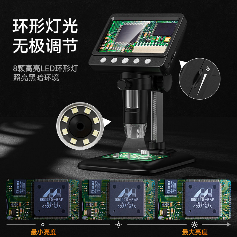 1000倍高清电子显微镜工业维修数码放大镜线路板pcb焊接手机表维修带标尺产品检测古玩鉴赏可连电脑拍照录像
