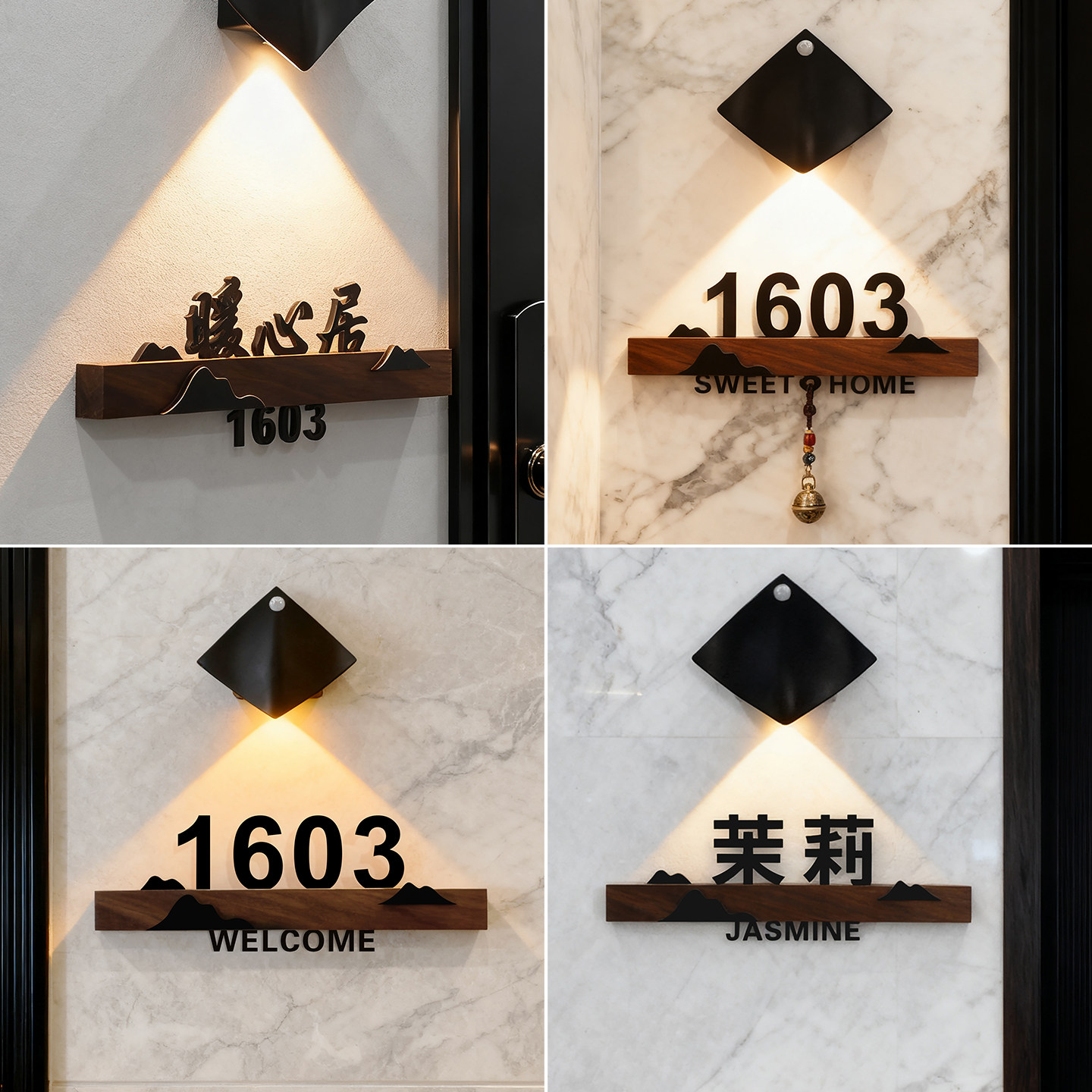 门牌号高级感轻奢创意入户装饰家庭号码牌家用定制磁吸感应灯2026年新款回家仪式感门上装饰品中古风大门挂件