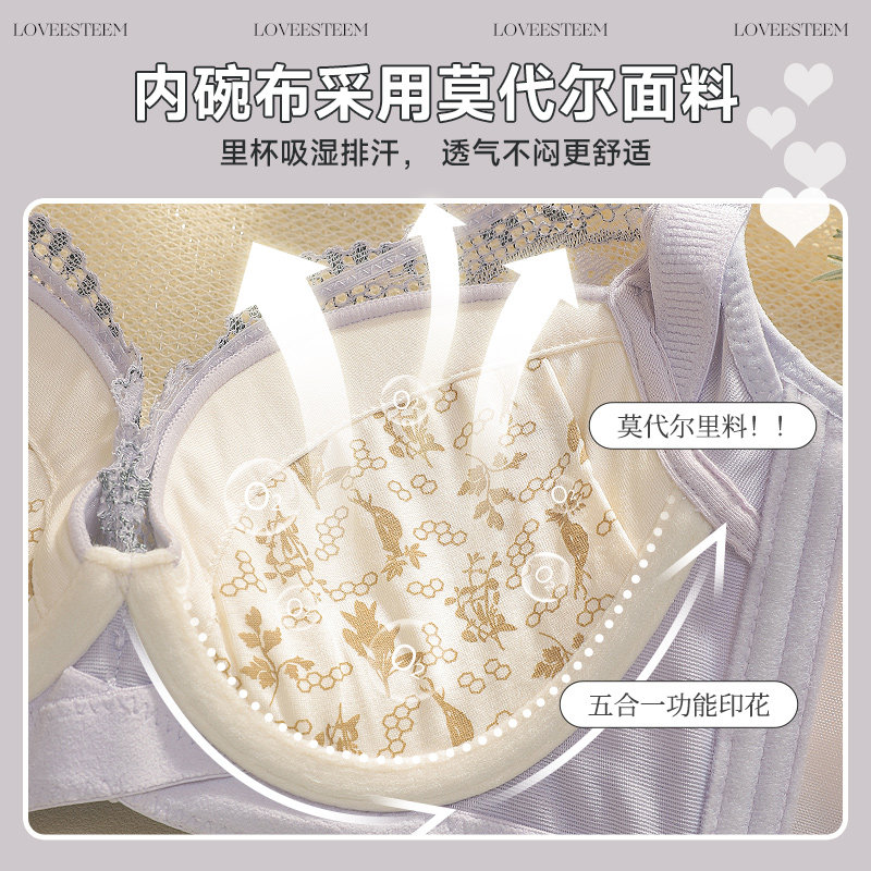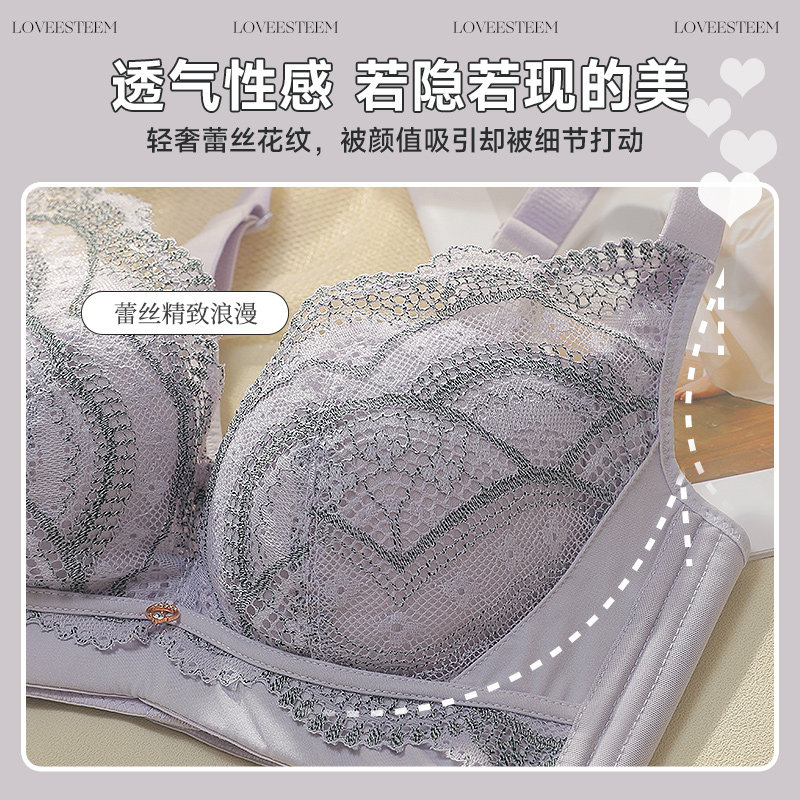 爱黛舒适透气性感蕾丝内衣女记忆钢圈上托聚拢防下垂收副乳文胸罩