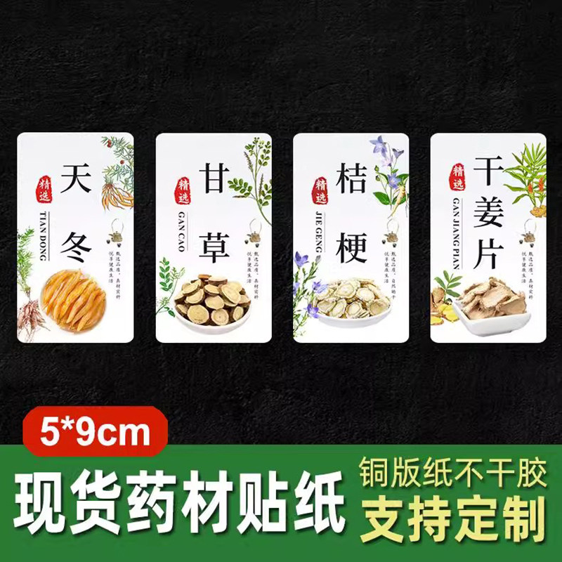 新款三七天麻丹参甘草贴纸白术天冬熟地葛根桔梗不安叫标签药材贴