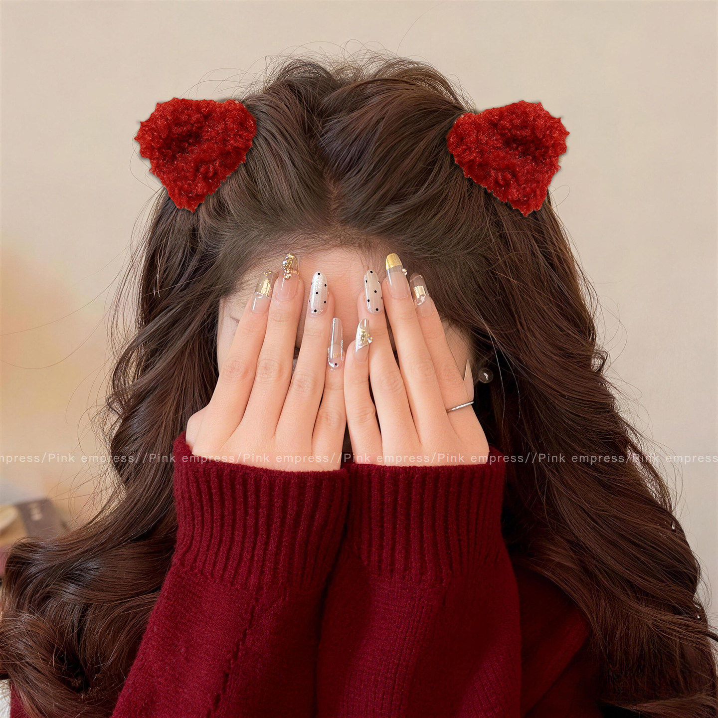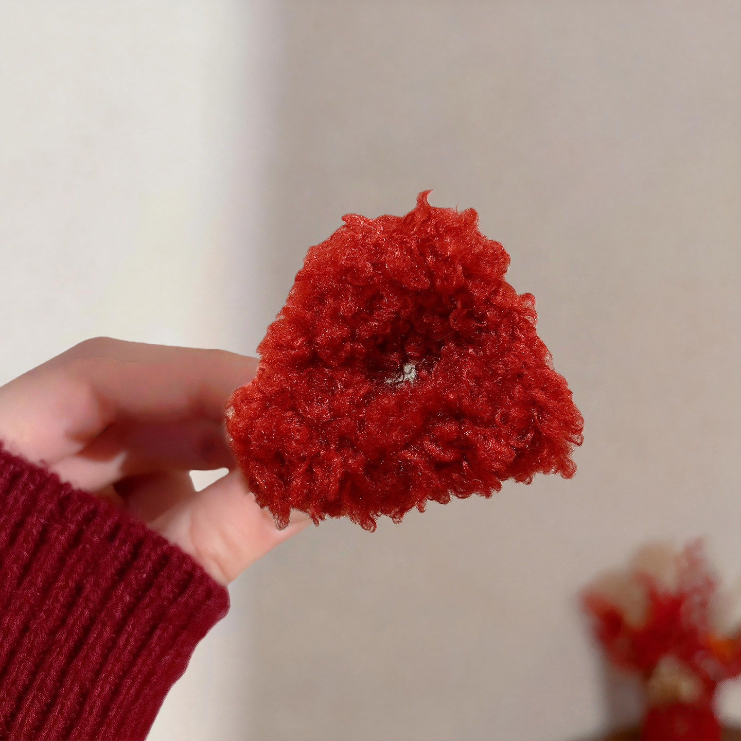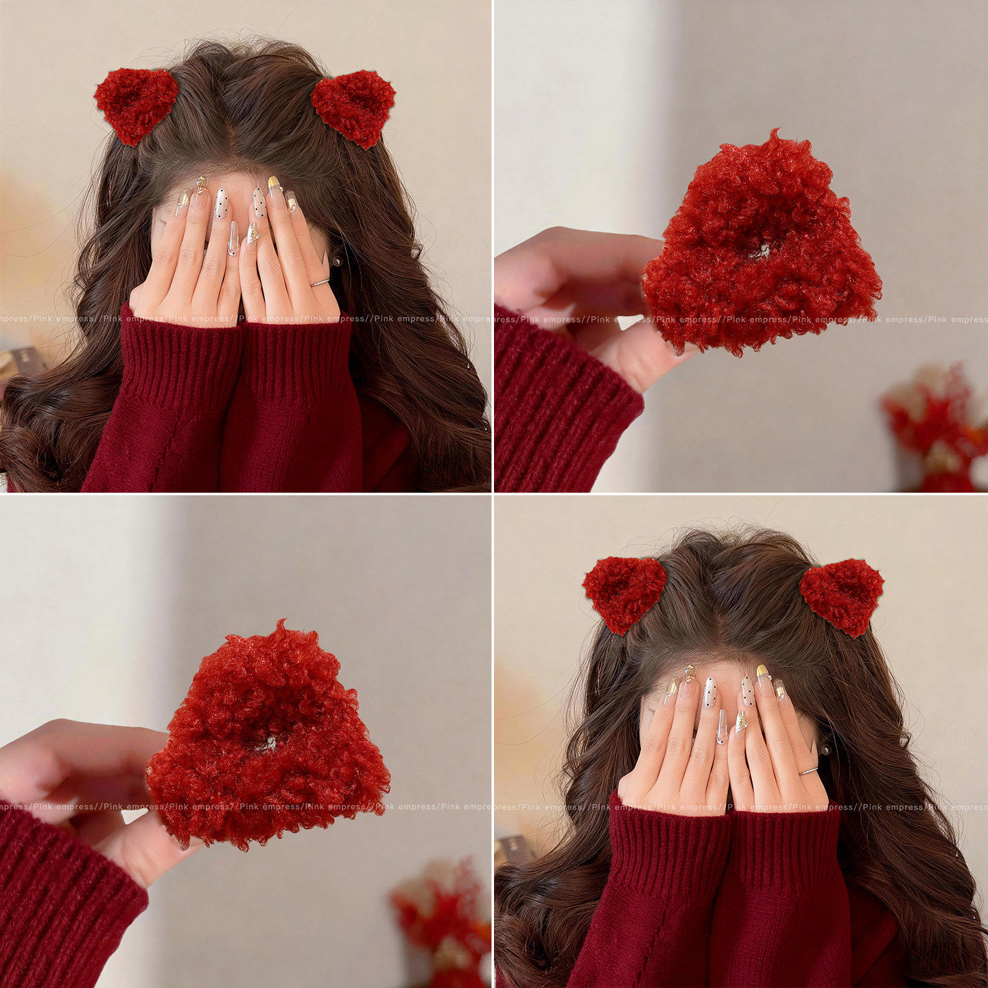 毛绒红色小抓夹女新年猫耳公主头发夹前额刘海侧边夹过年发卡发饰