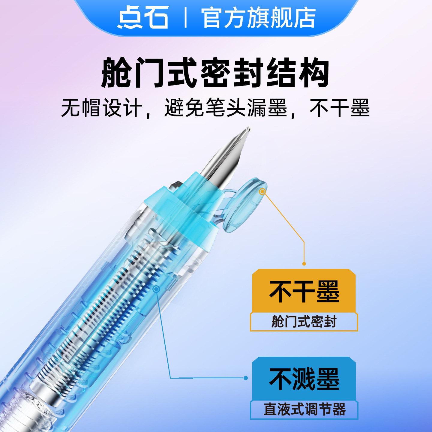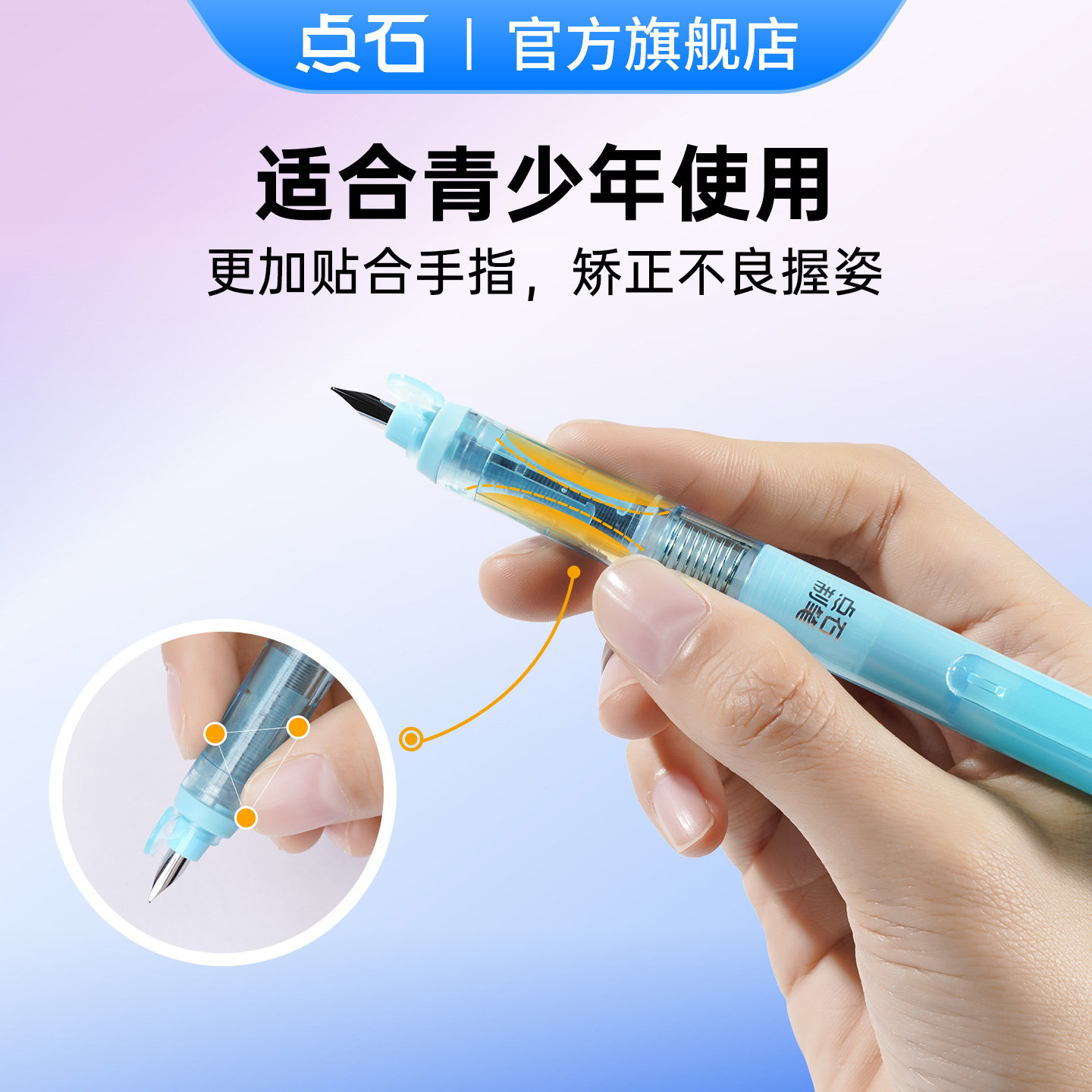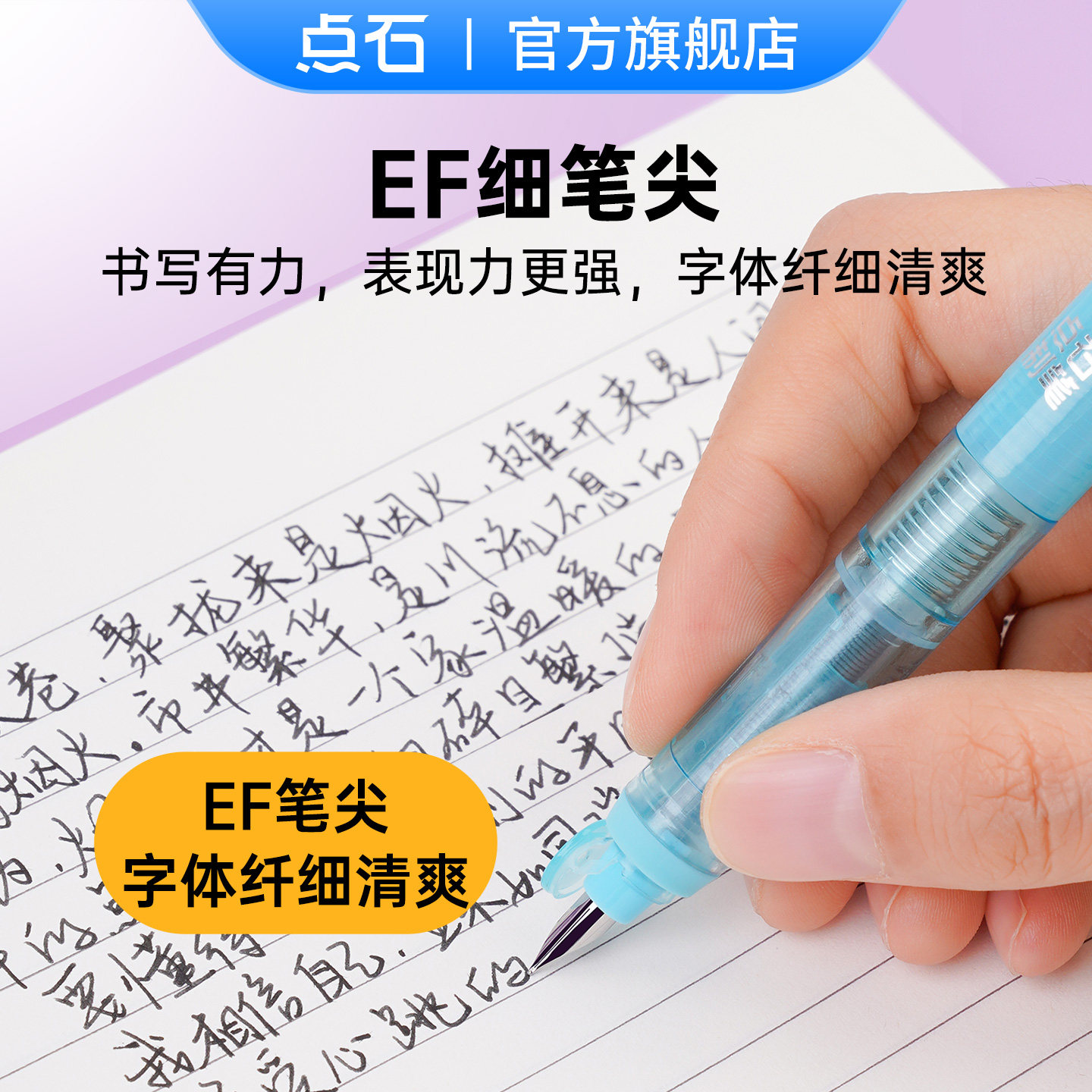 点石按动钢笔轻简系中小学生三年级专用小包尖矫姿正姿细尖EF尖楷书姓名贴儿童硬笔书法练字高颜值直液式785