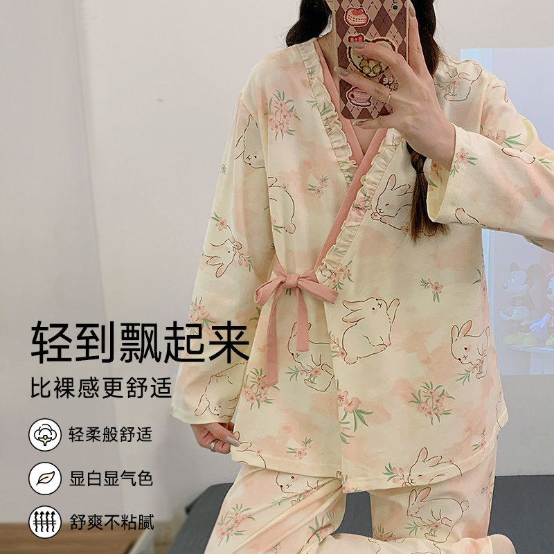 春秋季云感棉带胸垫月子服产后产妇秋冬12月份孕妇哺乳睡衣家居服