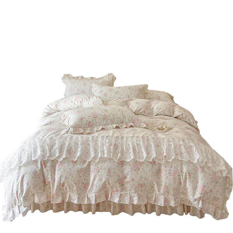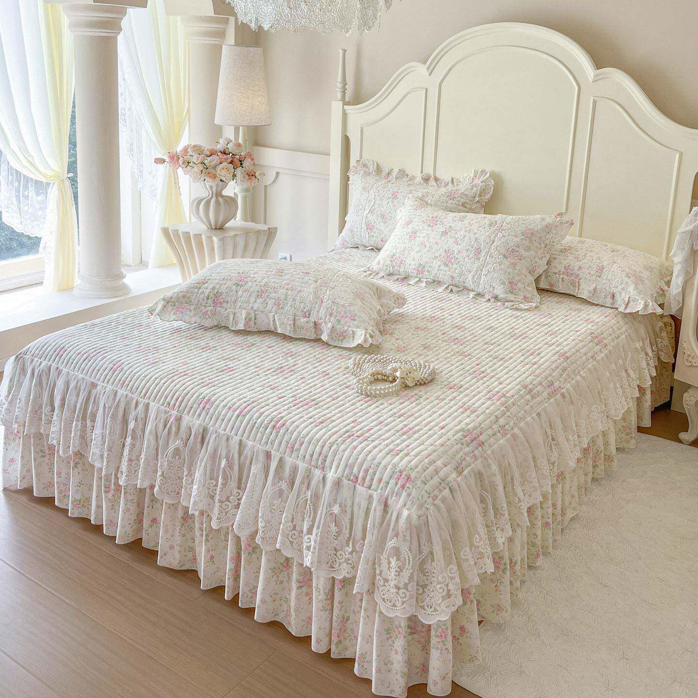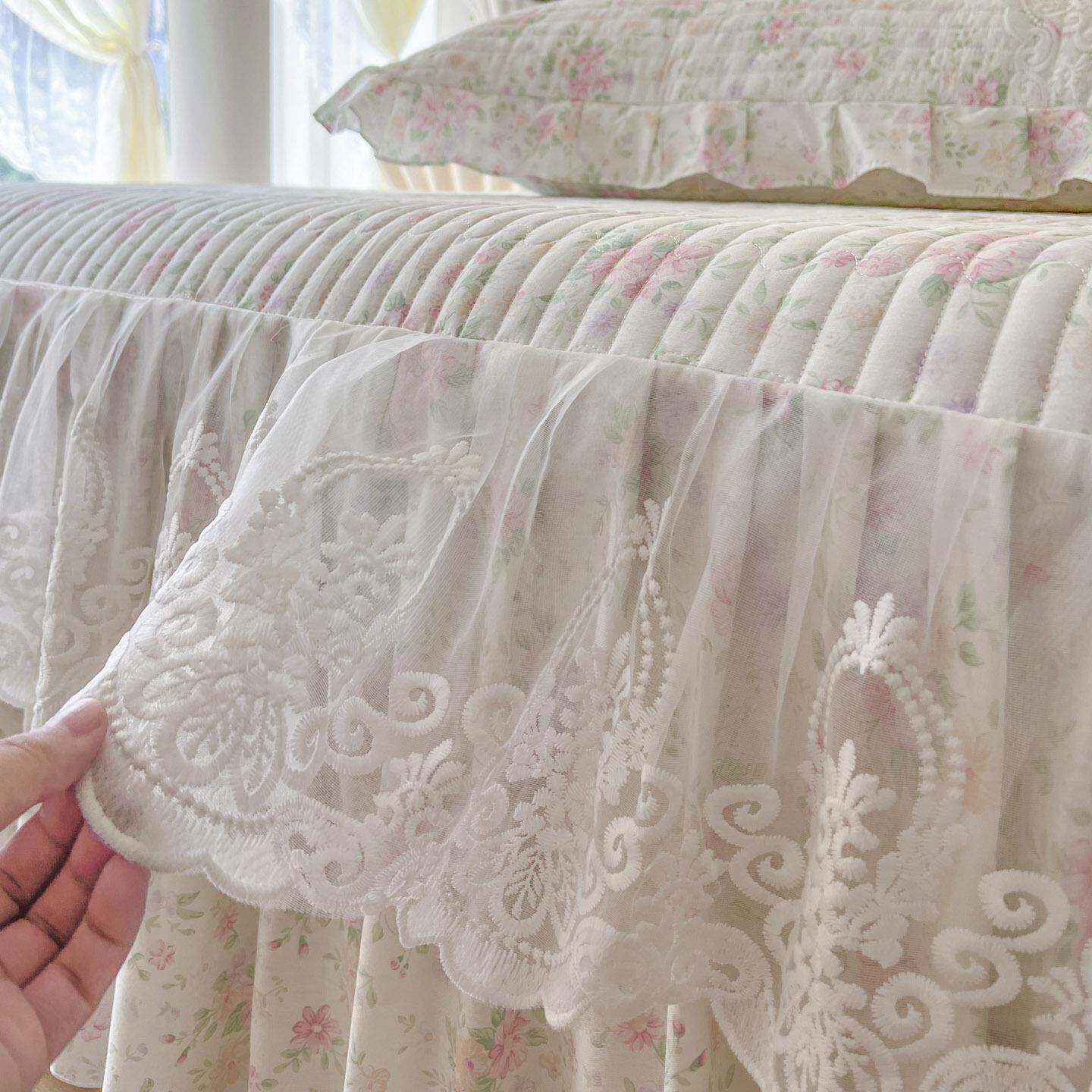 公主风碎花纯棉蕾丝夹棉床裙单件床单带裙边床罩四季通用床围裙罩